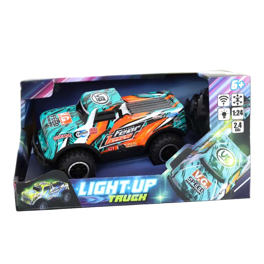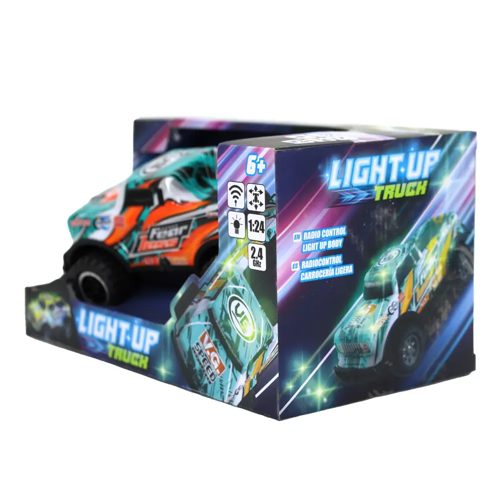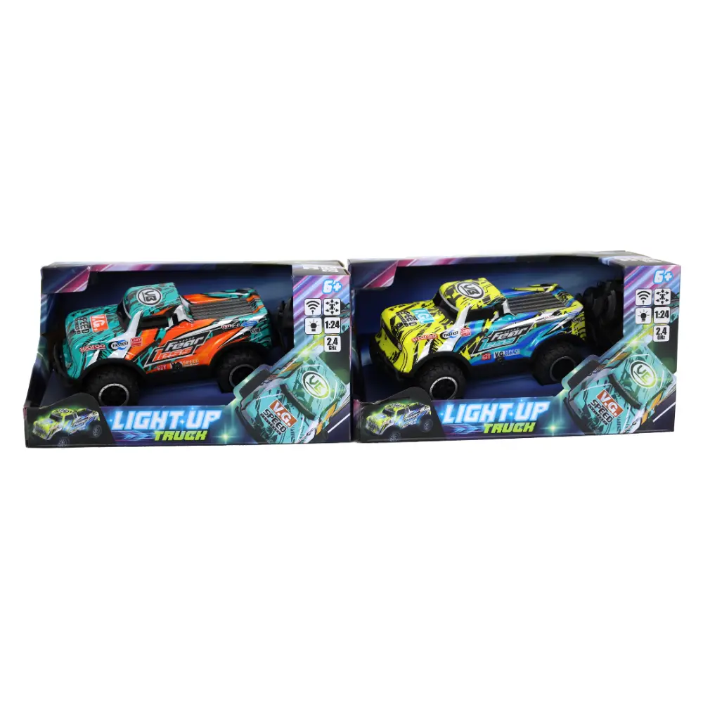 Take the wheel and drive in style with the RC 1:24 Light Up Truck – Yellow.
