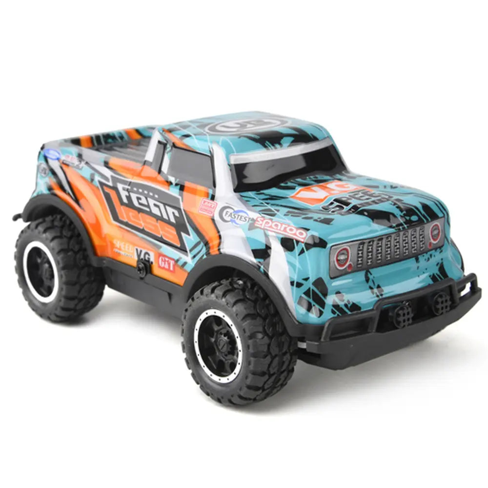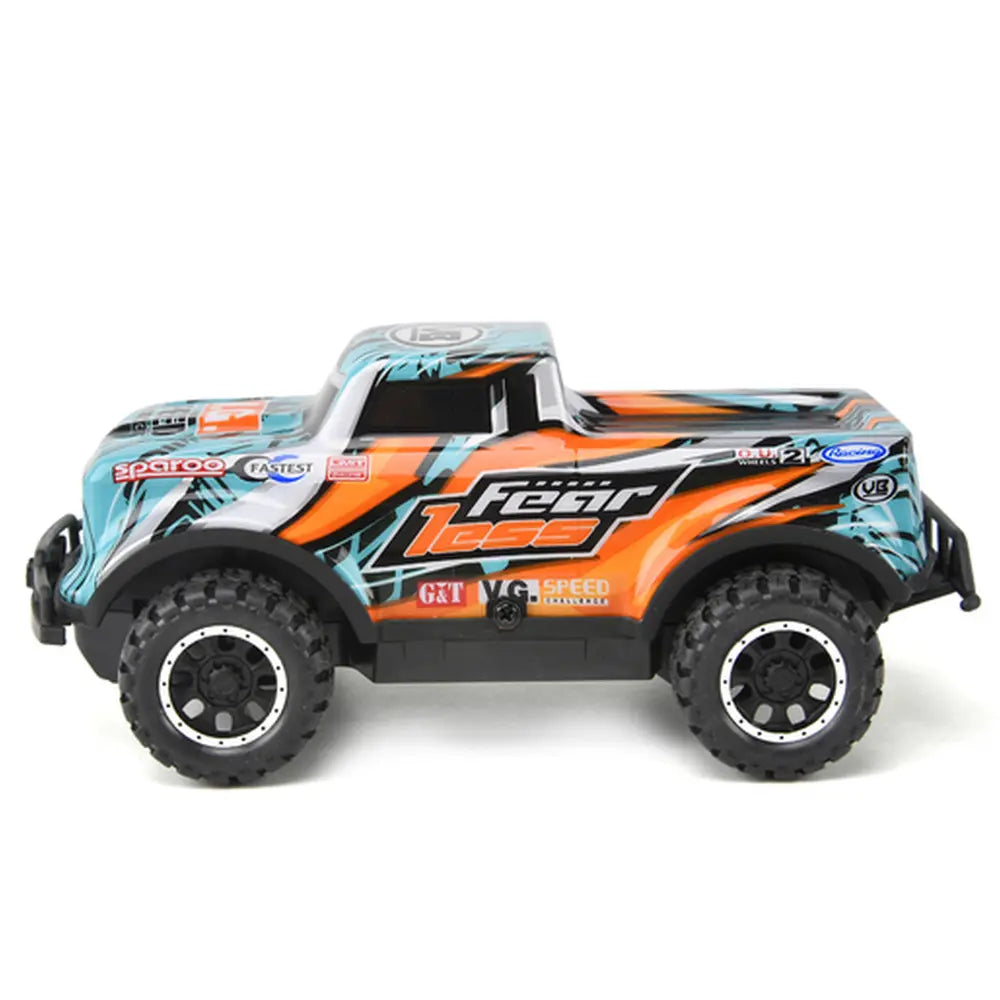 This easy to use RC truck features a stylish, colourful design and is built for fun. Move the car forward, backwards, left and right with ease on the strong tires.