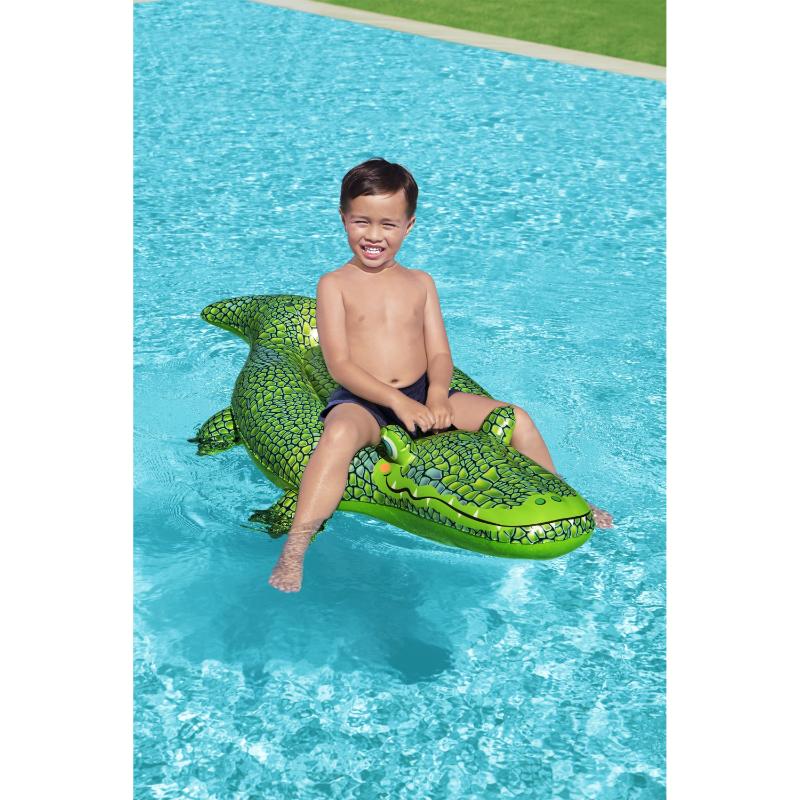 A fun and adventurous Bestway Rider Buddy Croc (152 × 71 cm) inflatable pool float that lets kids ride and play like a crocodile in the water. Made from durable vinyl, it’s designed for safe and stable fun in pools, lakes, or calm waters. Its bright colors and playful design make it perfect for summer water adventures.