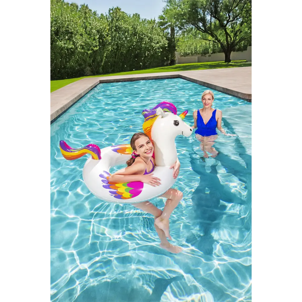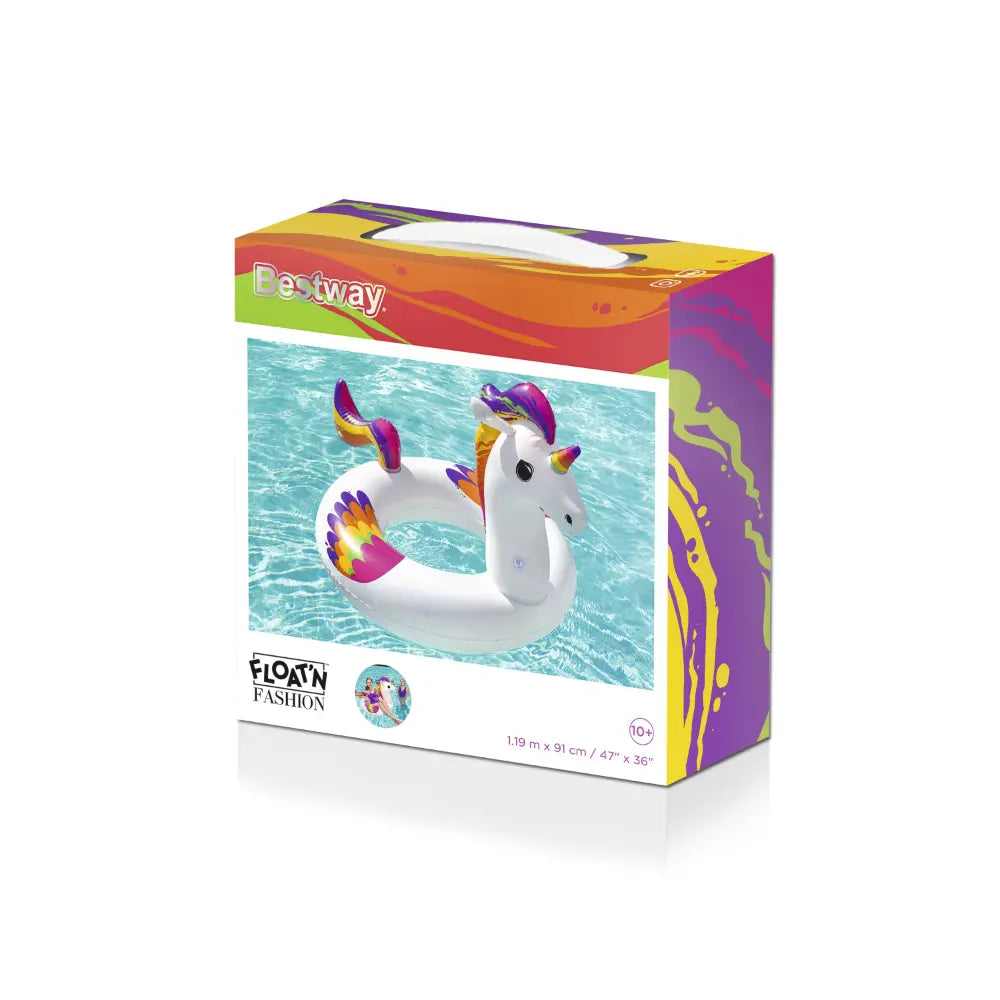 استمتع يومًا ساحرًا على الماء مع حلقة السباحة Fantasy Unicorn من بيستواي! لا تقتصر مميزاتها على الرسومات الملونة الجذابة فحسب، بل تحتوي أيضًا على رقبة طويلة على شكل وحيد القرن يمكن استخدامها للتشبث أو الاستناد أثناء الاستمتاع بالمسبح أو البحيرة أو الشاطئ.