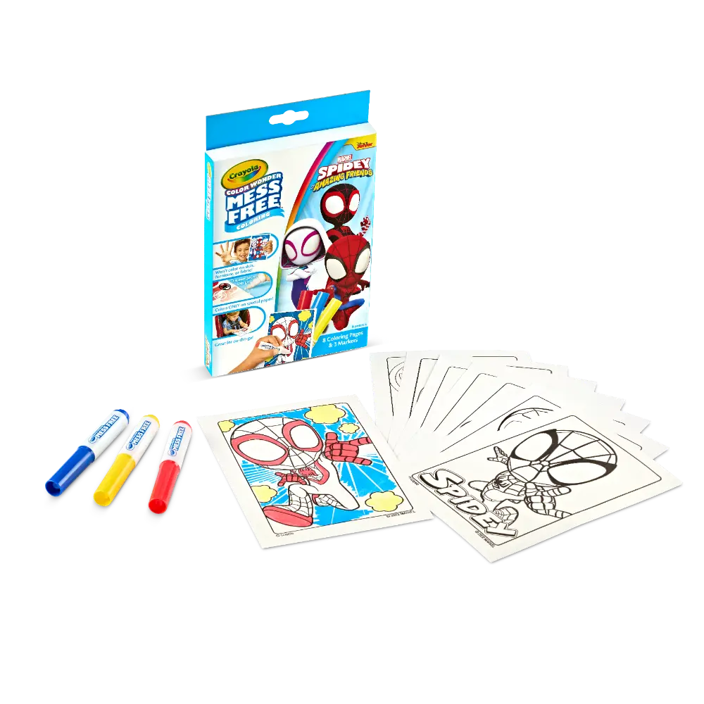Kids can color their favorite superhero with the Spider-Man using this fun Crayola Color Wonder set. Designed for mess-free creativity, the special Color Wonder markers only work on Color Wonder paper—so parents don’t have to worry about stains on skin, clothes, or carpets. With exciting action scenes featuring Spidey and friends, this set keeps little ones engaged while encouraging imaginative, screen-free play. Includes 8 coloring pages and 3 Color Wonder markers. Perfect for kids ages 3 and up.