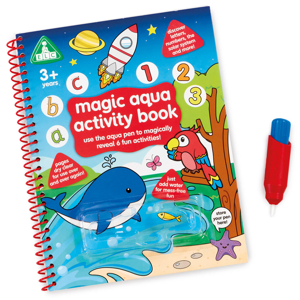 Spark creativity and learning with the Early Learning Centre Magic Aqua Activity Book! This colourful, spiral-bound activity book features six fun, mess-free activities that help children explore letters, numbers, the solar system, and more. Using the included aqua pen, kids simply add water to reveal vibrant colours and magical designs, making learning fun and interactive. Perfect for developing fine motor skills and early writing abilities, this activity book is suitable for children aged 3 years and above.