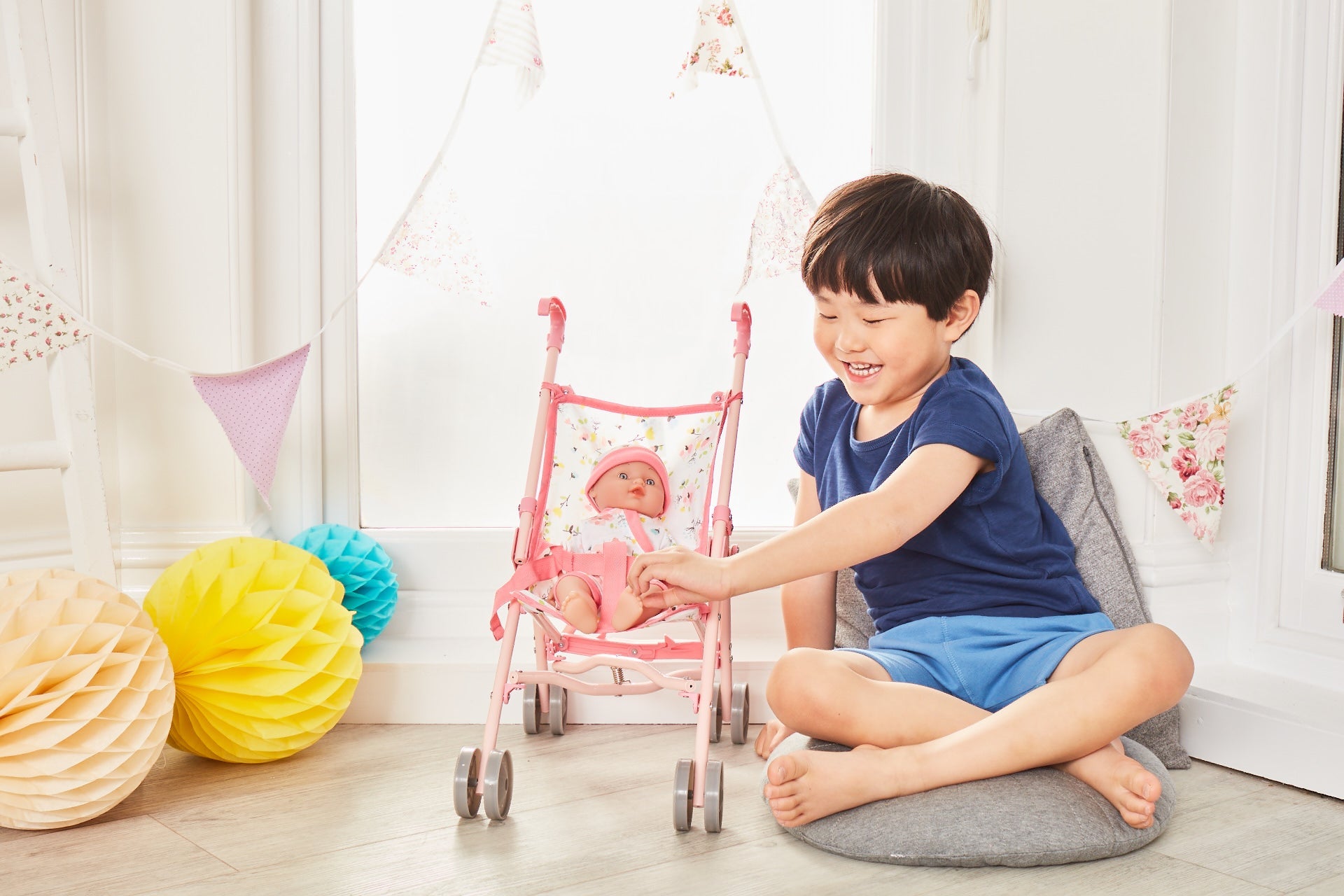 تأتي هذه الدمية اللطيفة مع عربة خفيفة الوزن ودمية كب كيك صغيرة رائعة. يمكنك أخذ دميتك في جولة أو اللعب بها في المنزل. اعتنِ ببيبيك مع الكثير من العناق، وخذها في نزهة مريحة بالعربة ثم ضعها للنوم بأمان في وقت النوم.