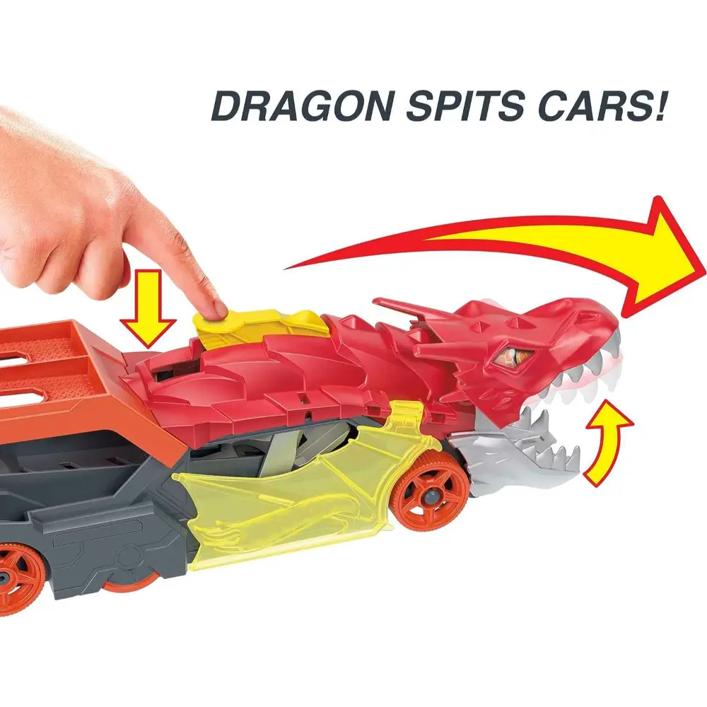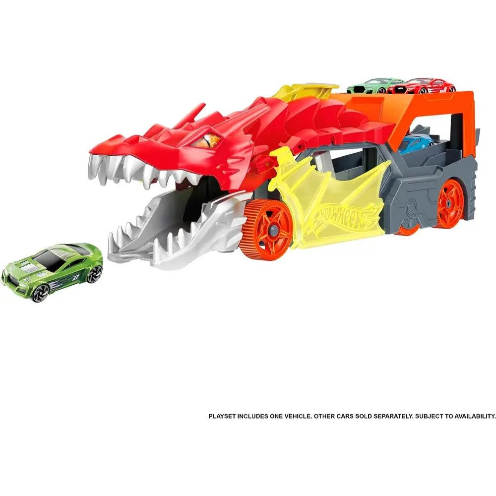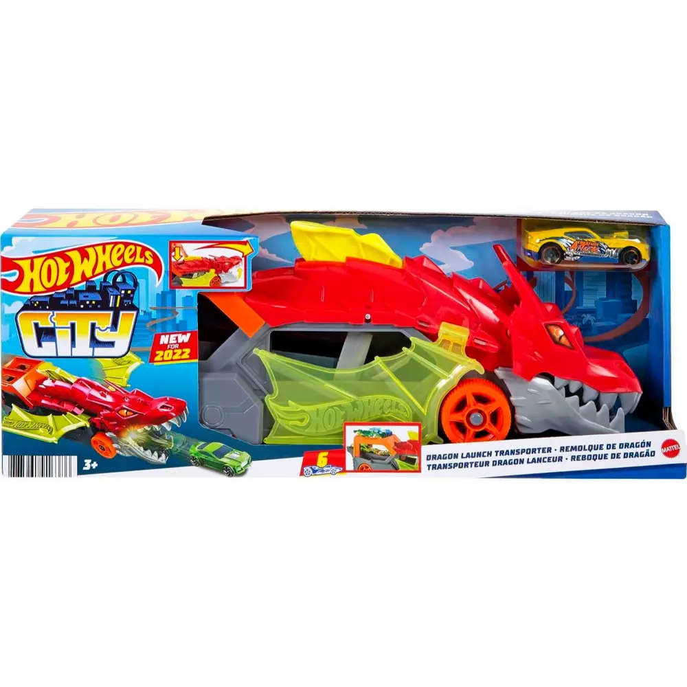 أطلق المتعة المشتعلة مع هوت ويلز سيتي دراجون لانش ترانسبورتر! تتيح هذه المجموعة الملحمية للأطفال تحميل ما يصل إلى ثلاث سيارات هوت ويلز بمقياس 1:64 في فم التنين وإطلاقها في مغامرات مثيرة. بفضل موصلات المسار الأمامية والخلفية، يمكن ربطها بسهولة بمسارات هوت ويلز الموجودة لتوسيع تجربة اللعب. تتضمن المجموعة سيارة هوت ويلز واحدة لبدء المغامرة، وتشجع على اللعب الإبداعي والمستقل. مصمم للتحديات والمتانة، يجعل هذا الناقل التنيني السباقات عالية السرعة، تدمير العقبات، واللعب القصصي المستمر ممتعًا للغاية. كما أنه متوافق مع سيارات هوت ويلز الإضافية (تُباع بشكل منفصل).