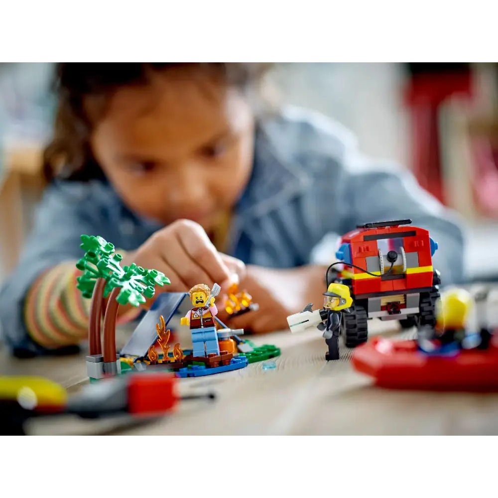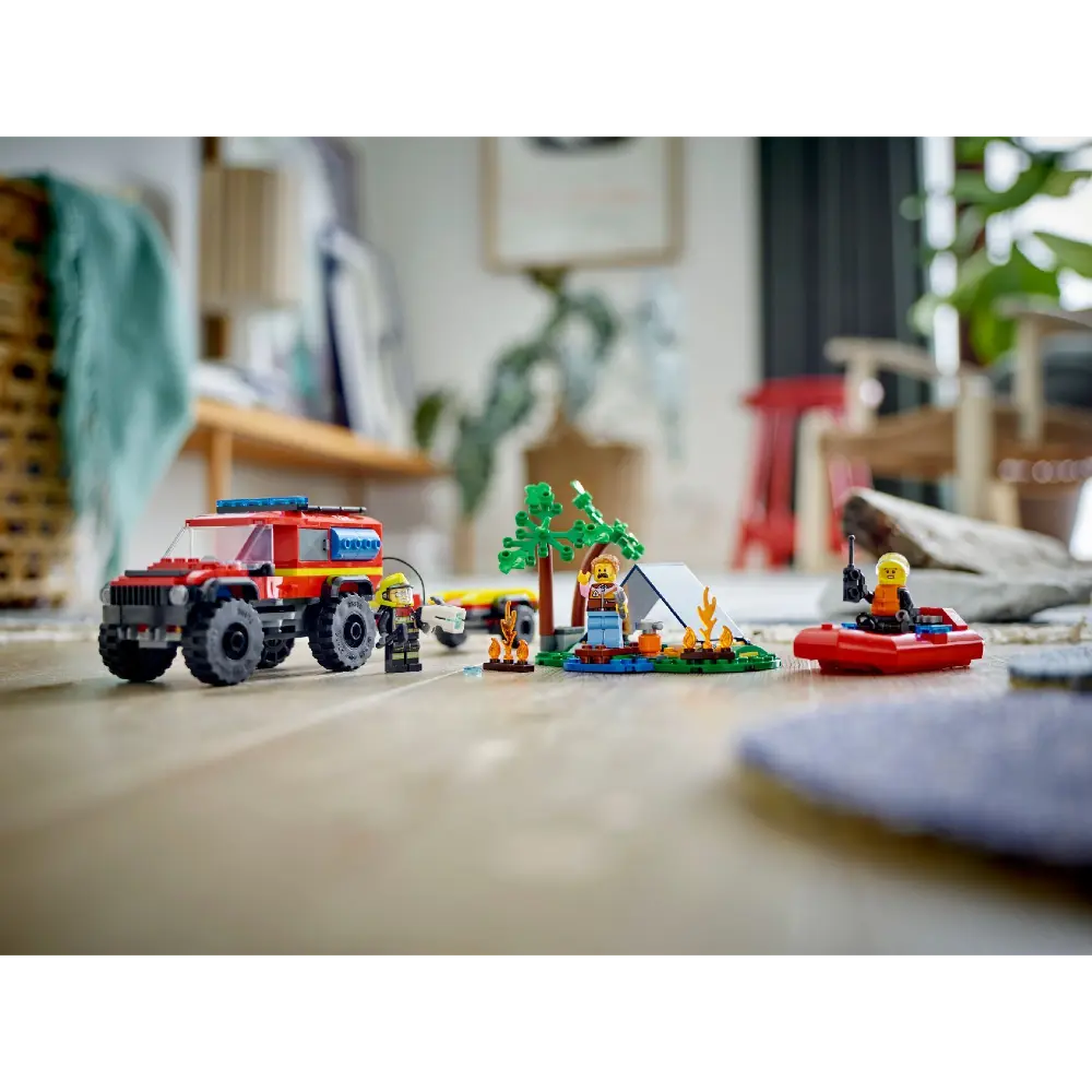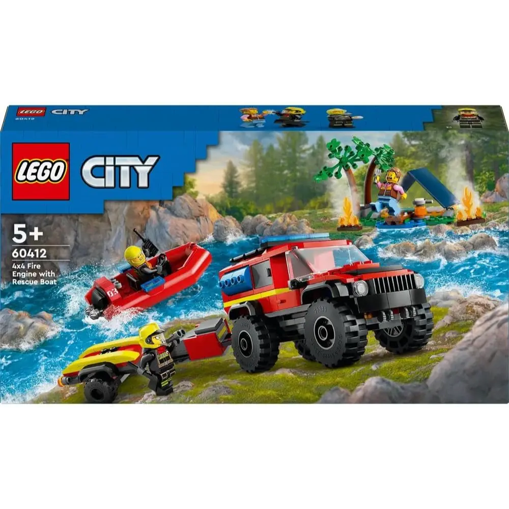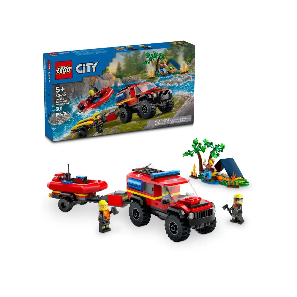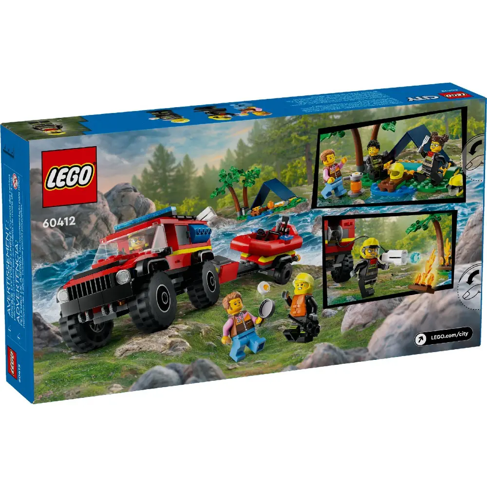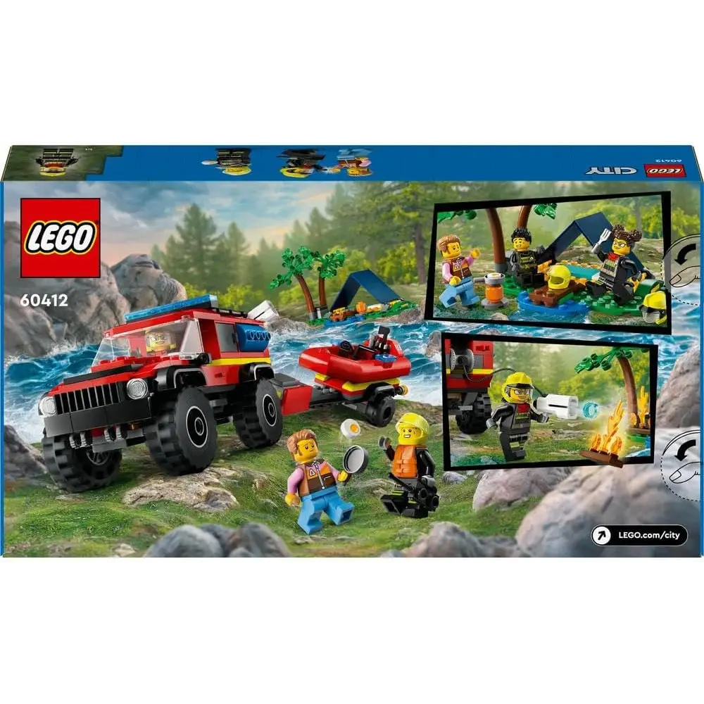 استمتع بتجربة مثيرة لعشاق مركبات الإنقاذ مع مجموعة LEGO City شاحنة إطفاء 4x4 مع قارب الإنقاذ (60412)! مناسبة للأطفال من عمر 5 سنوات فما فوق، هذه المجموعة مثالية للعب مليء بالإثارة حيث يمكن استخدام الشاحنة مع المقطورة لنقل القارب، بالإضافة إلى خيمة صغيرة ومشهد تخييم مع نار المخيم. أضف شخصيات رجال الإطفاء والمخيم الصغيرة وابدأ المغامرات!