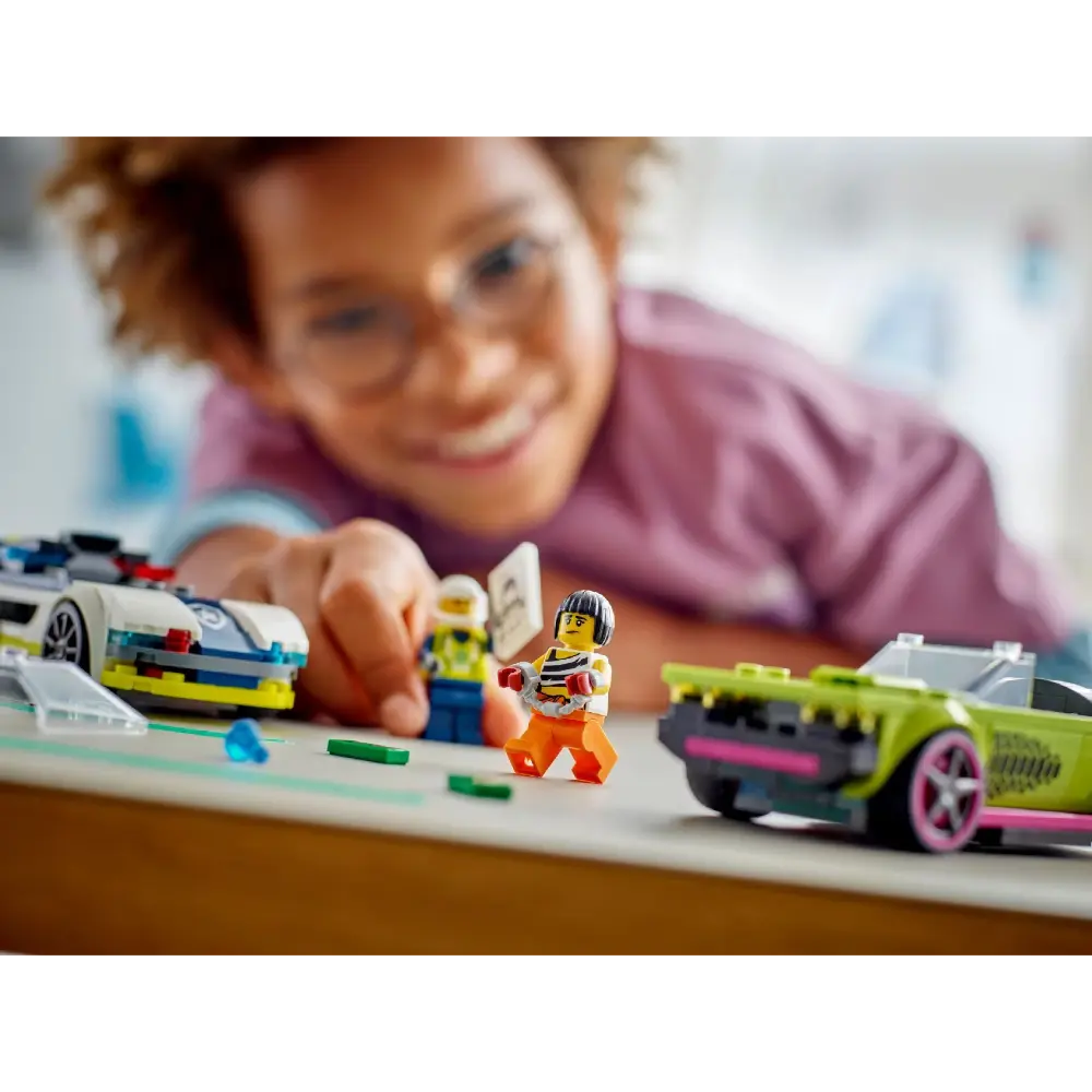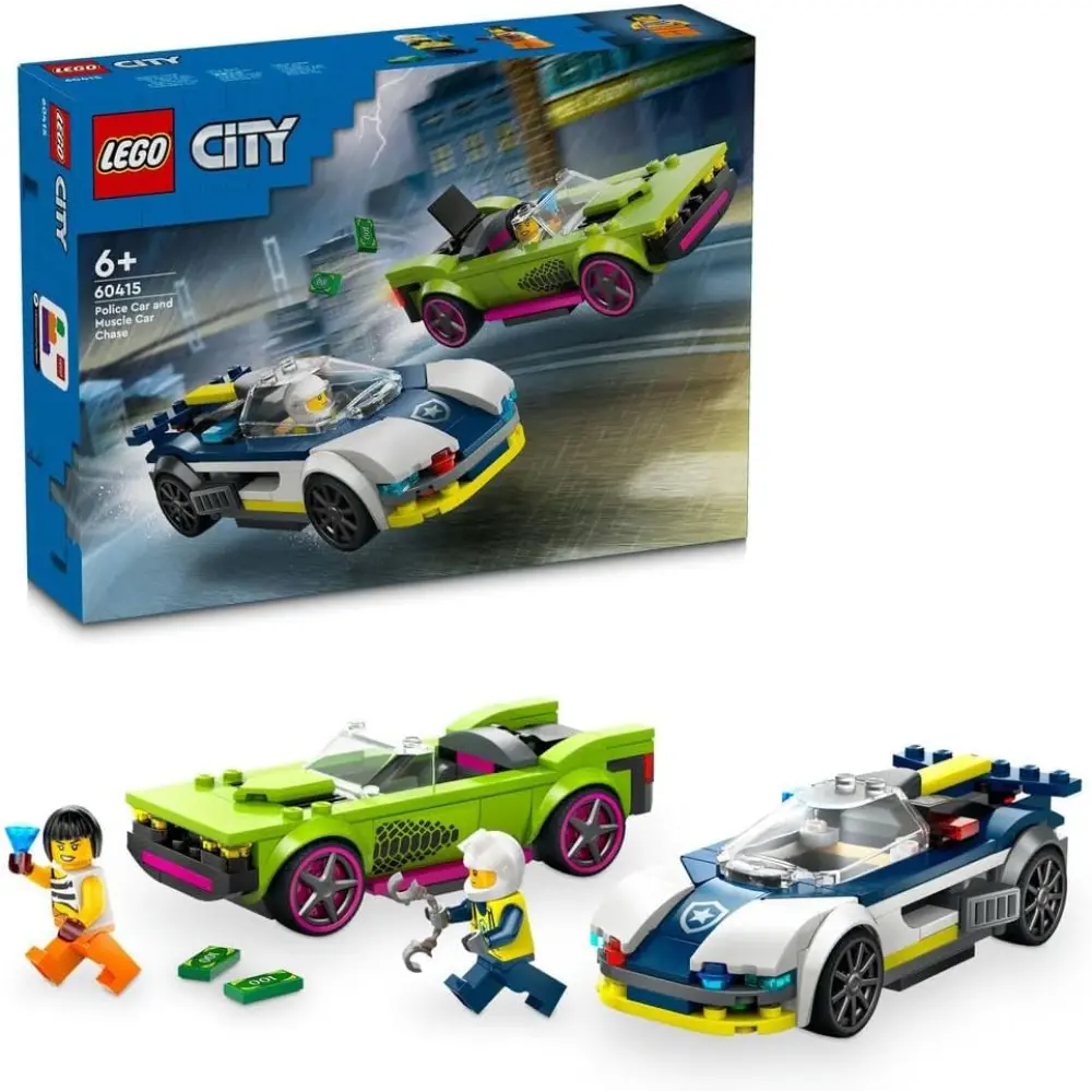 استمتع بالمرح والإثارة عالية السرعة مع مجموعة لعبة سيارات الشرطة للأطفال من سن 6 سنوات فما فوق. تتضمن مجموعة LEGO® City مطاردة سيارة الشرطة والسيارة الرياضية (60415) سيارة شرطة قوية وموثوقة وسيارة هروب، بالإضافة إلى شخصيات ضابط شرطة ولص للعب الأدوار القصصي الممتع.
