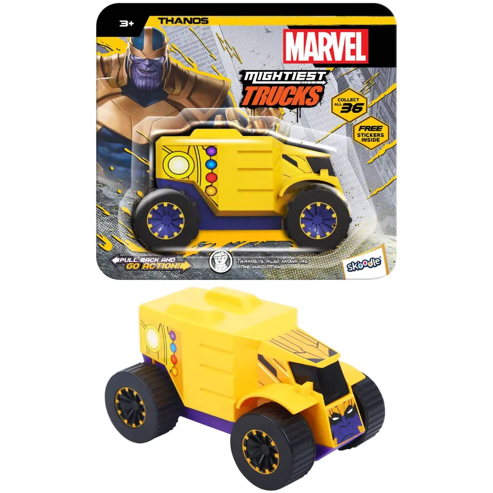 شاحنة مارفل – أقوى الآلات، ثانوس ديناميكية ومسلية، تقدم متعة عالية السرعة بين يديك. ببساطة اسحب الشاحنة إلى الخلف، حررها، وشاهدها وهي تنطلق للأمام بسرعة، لتبهر الأطفال والكبار بحركاتها السريعة والمثيرة. صغيرة الحجم، ملونة، ومصممة لتوفير الإثارة، تُعد هذه الشاحنة من مارفل مونستر تراك عنصرًا أساسيًا للعب المستمر والممتع. ستكون شخصية ثانوس سريعة جدًا بحيث لا يستطيع أعداؤه اللحاق بها أثناء مواجهة الجرائم!