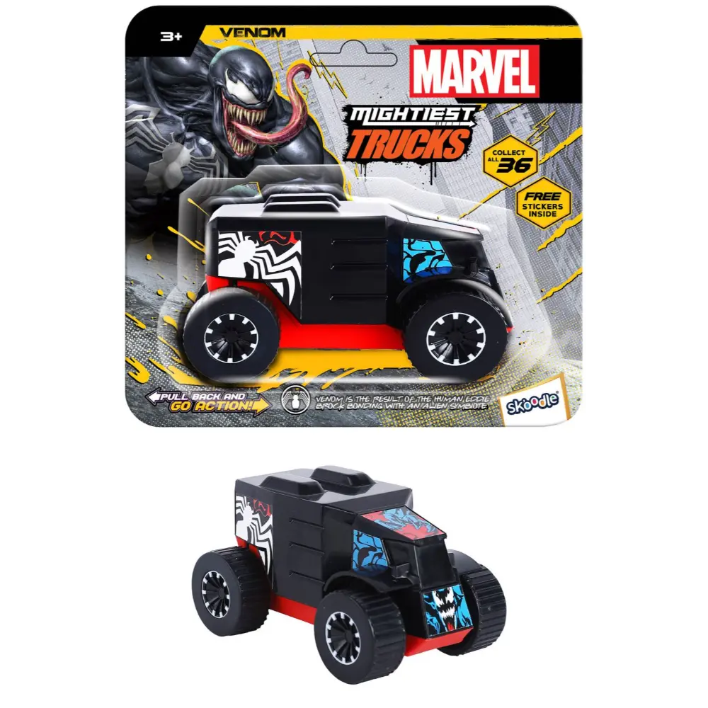 شاحنة مارفل – أقوى الآلات، فينوم ديناميكية ومسلية، تقدم متعة عالية السرعة بين يديك. ببساطة اسحب الشاحنة إلى الخلف، حررها، وشاهدها وهي تنطلق للأمام بسرعة، لتبهر الأطفال والكبار بحركاتها السريعة والمثيرة. صغيرة الحجم، ملونة، ومصممة لتوفير الإثارة، تُعد هذه الشاحنة من مارفل مونستر تراك عنصرًا أساسيًا للعب المستمر والممتع. سيكون شخصية فينوم سريعة جدًا بحيث لا يستطيع أعداؤه اللحاق بها أثناء مواجهة الجرائم!