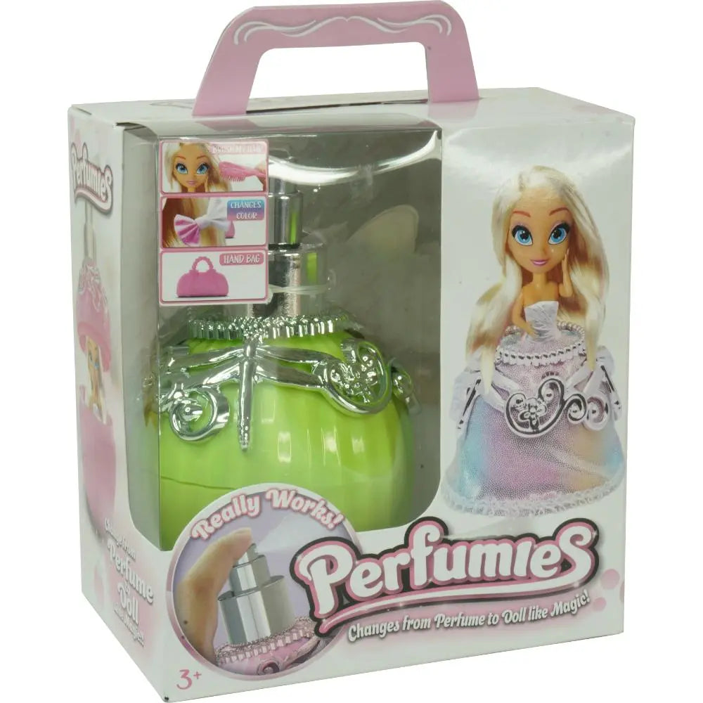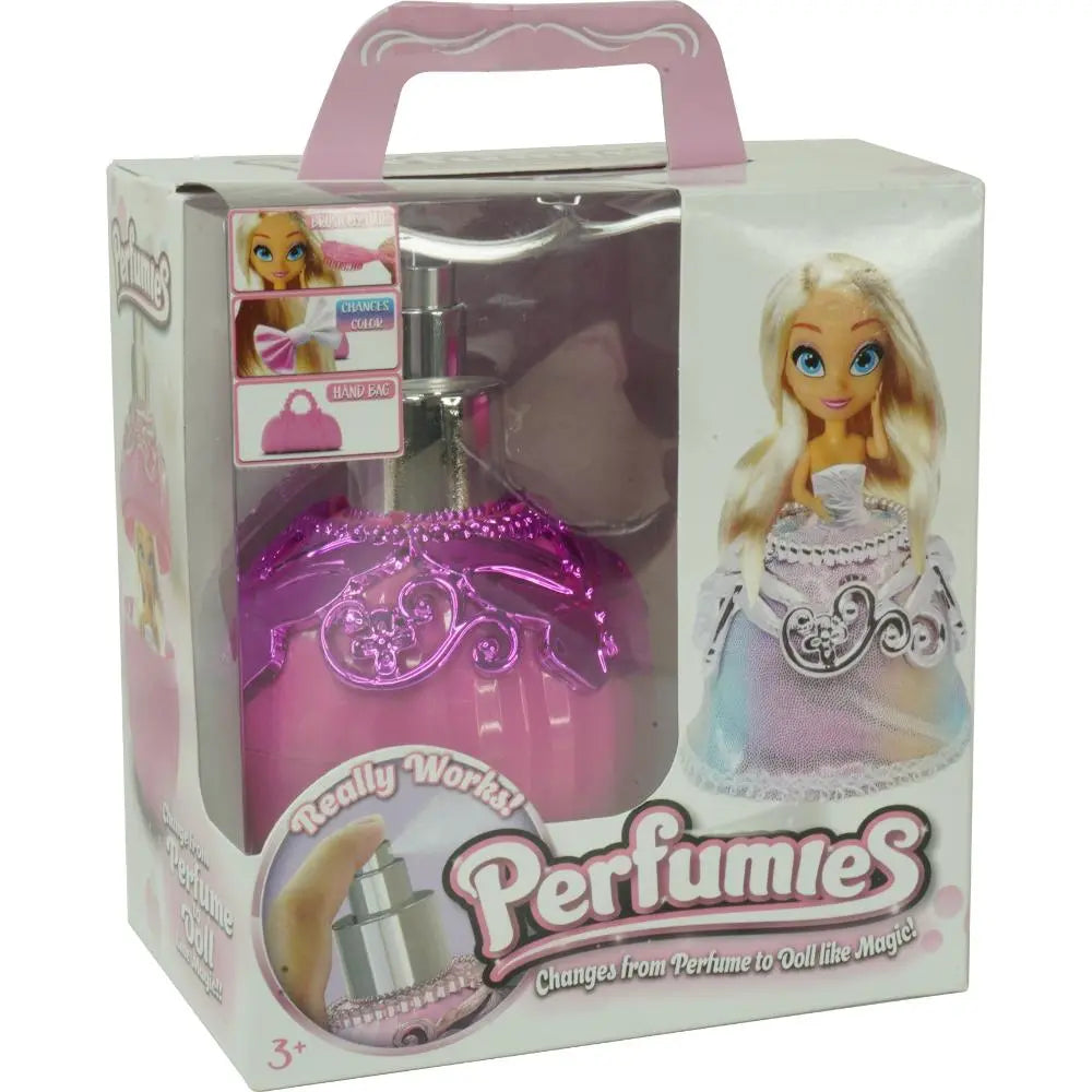 اكتشفوا Perfumies، العلامة التجارية الجديدة الممتعة والأنيقة حيث تتحول زجاجات العطور الملونة إلى دمى صغيرة قابلة للجمع. تتميز كل دمية بشعر طويل فاخر يمكن تسريحه وتزيينه مع رباط رأس يتغير لونه بشكل سحري. مثالية للعب الإبداعي، يمكن للفتيات مزج وتنسيق الإكسسوارات، ابتكار تسريحات شعر فريدة، وجمع كل السلسلة لتوسيع عالم Perfumies الخاص بهن.