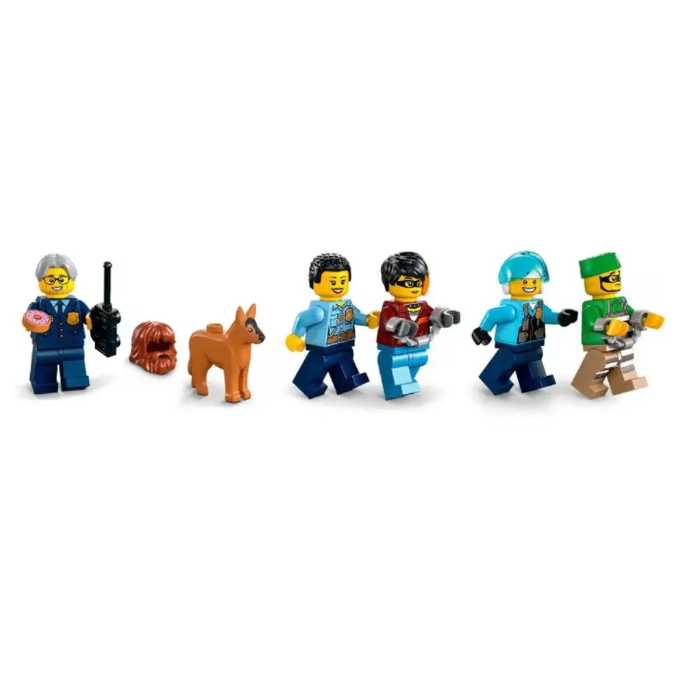 - يحتوي على 5 شخصيات مصغرة، بما في ذلك شخصيات من مسلسل LEGO City Adventures