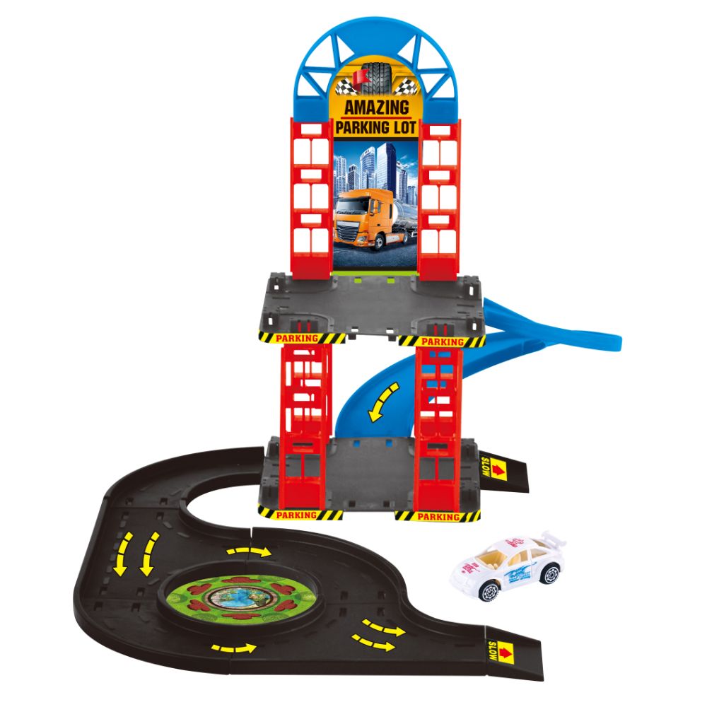 The Power Joy Vroom Vroom Amazing Parking Lot With 1 Car is an exciting playset that brings the fun of car parking and racing right into your home. This set includes a multi-level parking lot and one die-cast pull-back car, designed for smooth movement and imaginative play. Children can park, race, and navigate the ramps, promoting creativity and hand-eye coordination. Compact yet detailed, this playset is perfect for children aged 3 years and up, making it a great gift for young car enthusiasts.