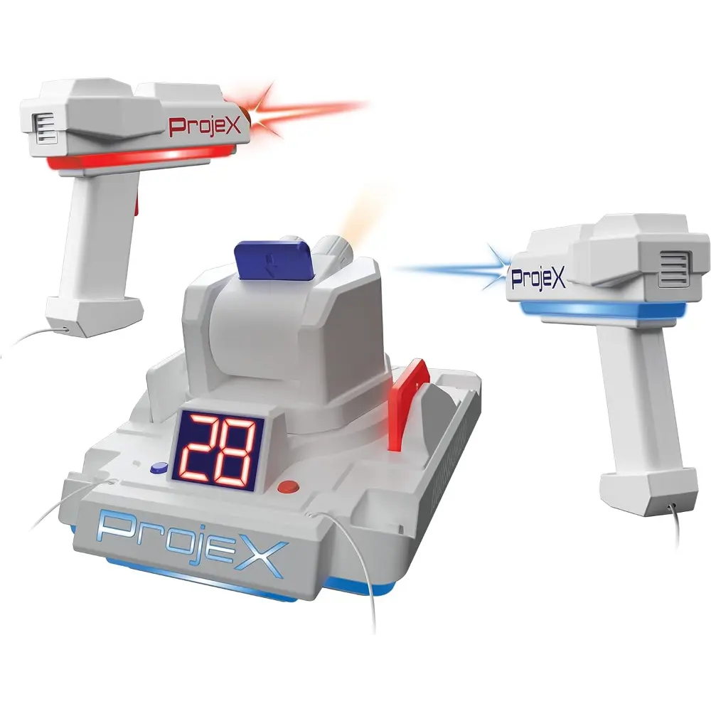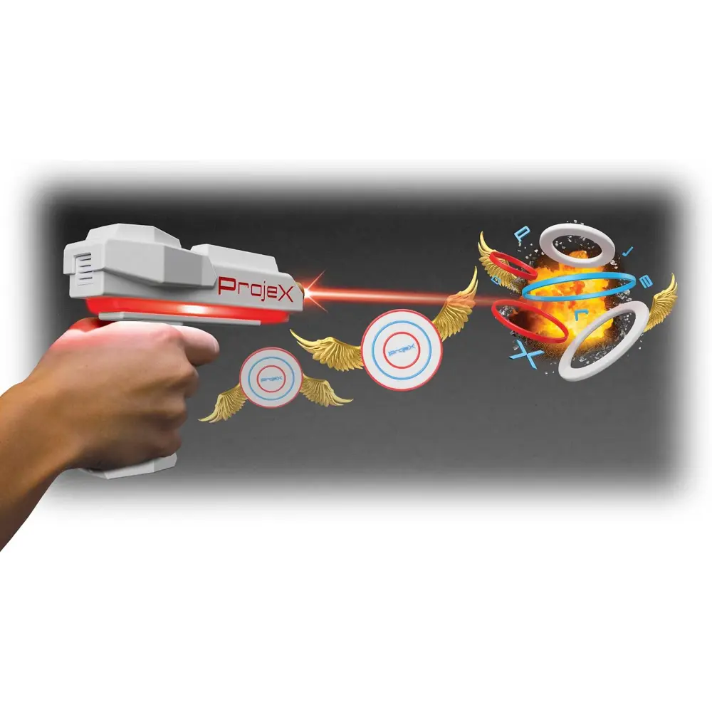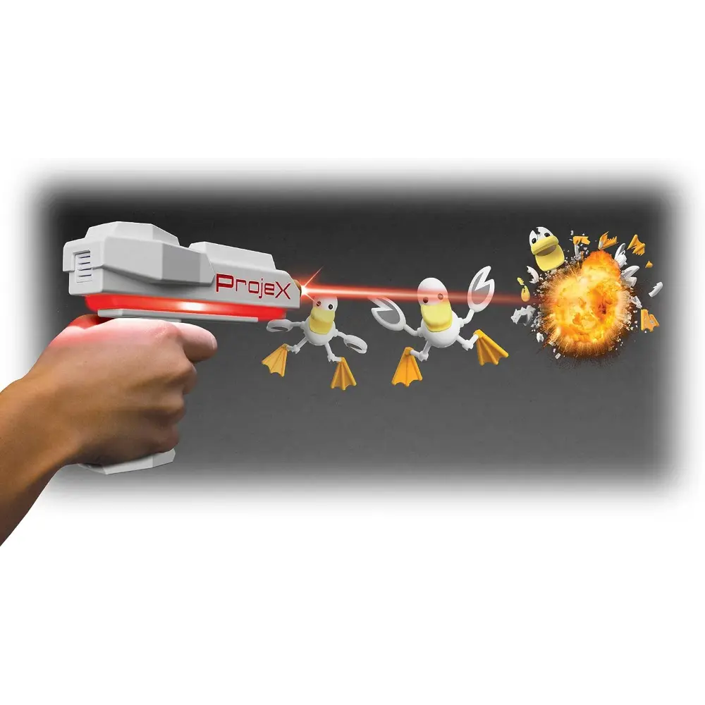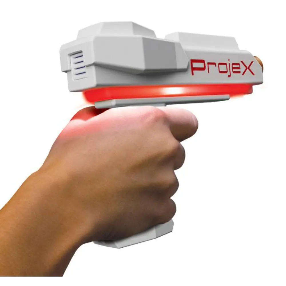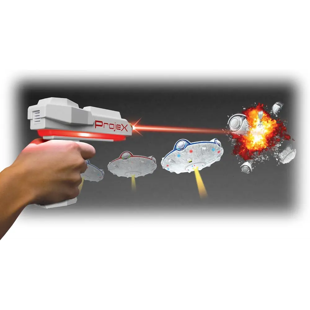 تتيح لك ProjeX اختبار سرعتك ومهاراتك أثناء إطلاق النار على الأهداف المتحركة المتحركة التي يتم عرضها مباشرة على الحائط! تأتي مع ثلاث شرائح صور متحركة قابلة للتبديل لعرض البط، الأهداف أو الأجسام الطائرة (UFO)، وكل واحدة لها مؤثرات صوتية وحركات فريدة.