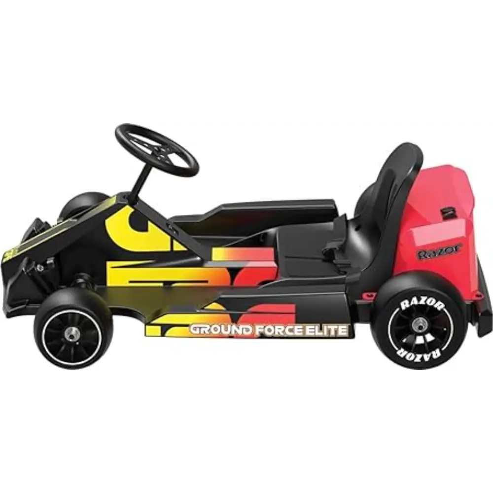 اختبر إثارة السباق مع Razor Ground Force Elite، سيارة كارت كهربائية عالية الأداء مصممة للمراهقين من عمر 13 سنة فما فوق. تتميز بتصميم مستوحى من كارت التحويل وبنية هيكلية موحدة، مما يوفر تحكمًا سلسًا وتوجيهًا دقيقًا وتجربة قيادة محسّنة. يدفع المحرك القوي بسعة 350 واط يعمل بالسلسلة الركاب بسرعة تصل إلى 22.5 كم/س، بينما توفر دواسة السرعة المتغيرة تجربة قيادة واقعية. تعد Ground Force Elite أول سيارة كارت كهربائية بقدرة 36 فولت من Razor تشمل مفتاح قيادة للأمام/الخلف، مما يسهل المناورة في الأماكن الضيقة. يتم التركيز على الراحة والسلامة مع مقعد دلو مبطن، وحزام أمان حول الخصر، وعجلة قيادة قابلة لضبط الارتفاع، وفرامل قرصية خلفية تعمل بدواسة القدم للتوقف الدقيق. قدْ بقيادة مليئة بالأناقة والتحكم والثقة مع Ground Force Elite.