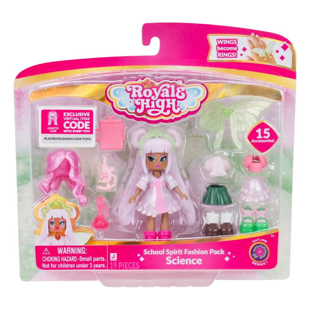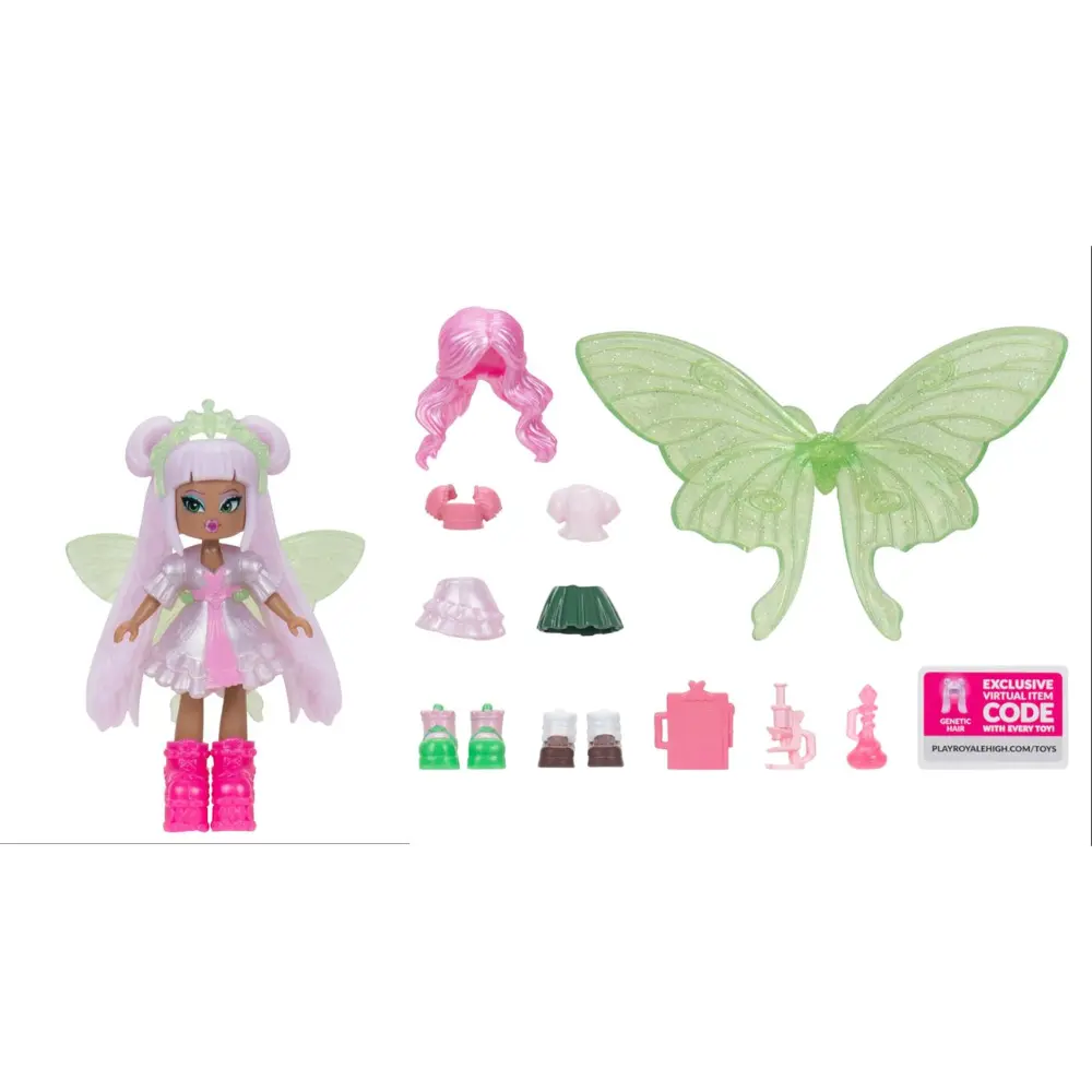 مرحبًا بك في العالم الساحر لـ "رويال هاي"! باعتبارها أكبر لعبة مستوحاة من الموضة، تدعوك Royale High لاستكشاف عالم افتراضي مليء بالأناقة والستايل. تحتوي دمية أزياء روح المدرسة بحجم 3 إنش المستوحاة من اللعبة على 15 إكسسوارًا وأجنحة جنيات تتحول إلى خاتم قابل للارتداء! يمكن تبديل جميع الملابس والإكسسوارات بين الدمى المختلفة، مما يسهل جمعها، ابتكار الإطلالات، وتخصيصها حسب الرغبة. تأتي الدمية أيضًا مع رمز لعبة قابل للاسترداد لتزيين الجنية في جميع التجارب. مرخّصة رسميًا ومناسبة للأطفال من عمر 5 سنوات فما فوق.