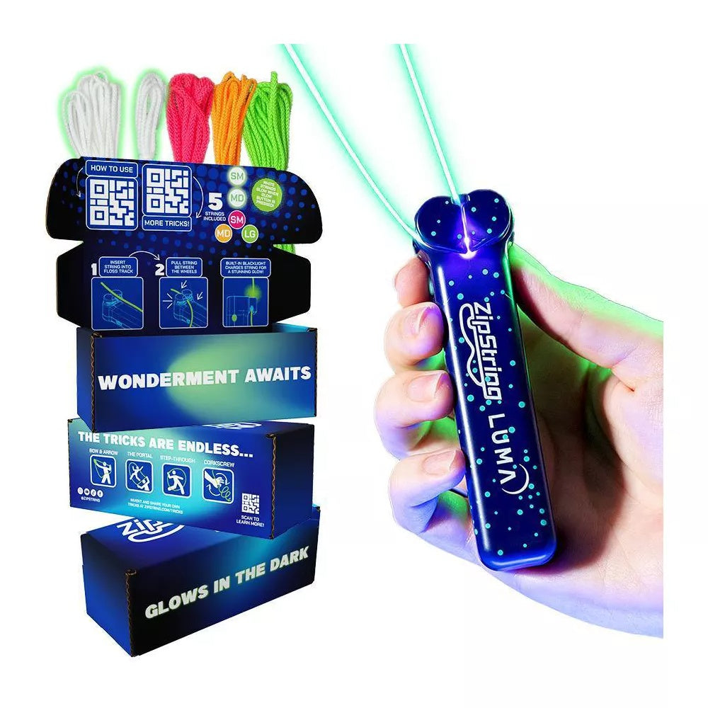 Bring light, color, and motion together with the ZipString Luma — the glowing string toy that turns your movements into mesmerizing light patterns! Luma includes 5 ultra-glow strings in different lengths and colors. Its built-in LED charges each string for an eye-catching glow that lasts, making it perfect for both day and night play. Create shapes, perform tricks, and show off your skills in dazzling light.