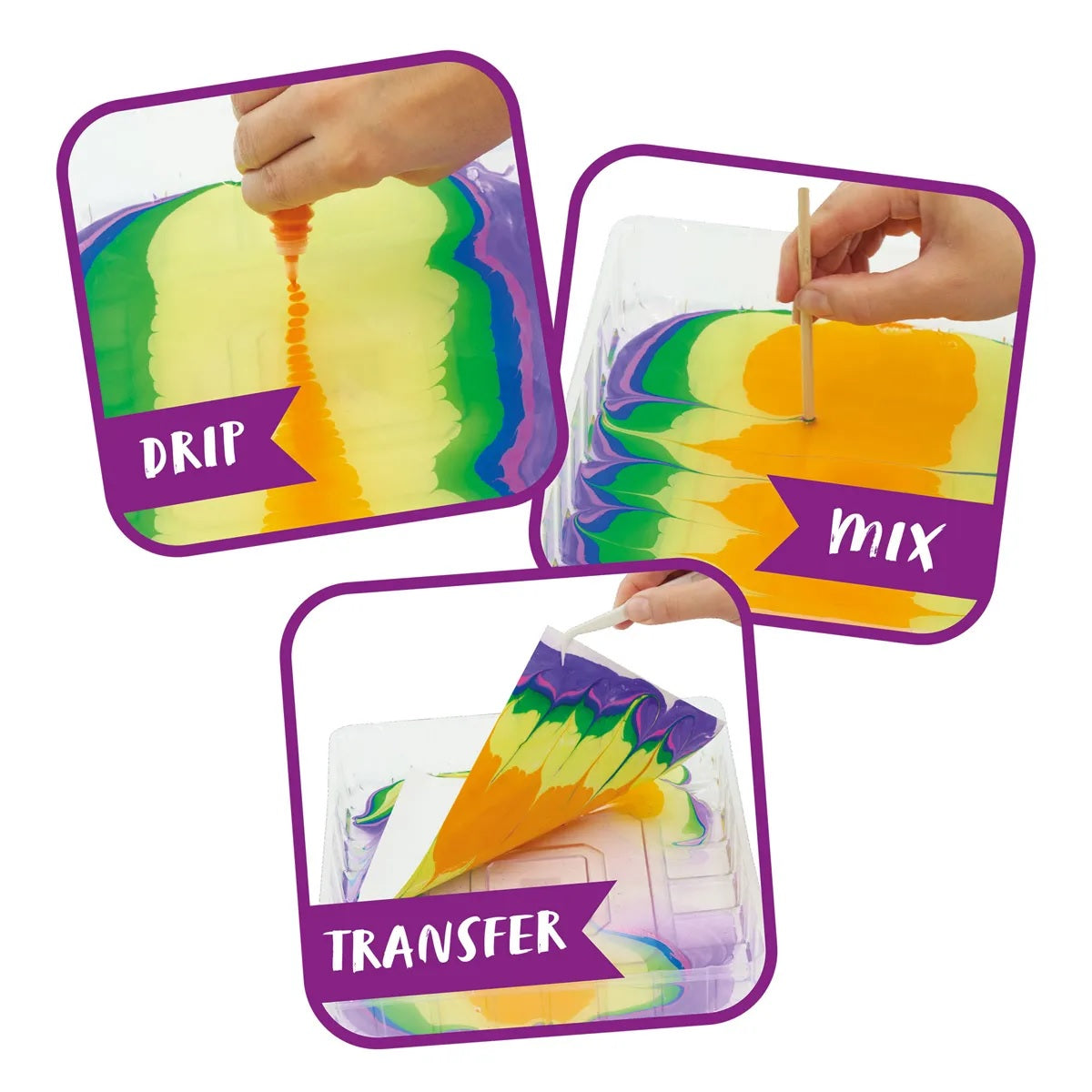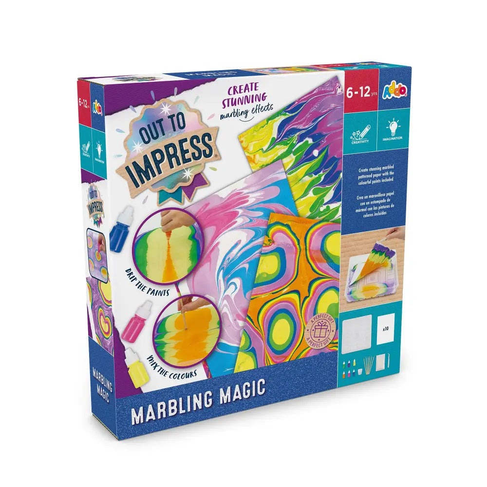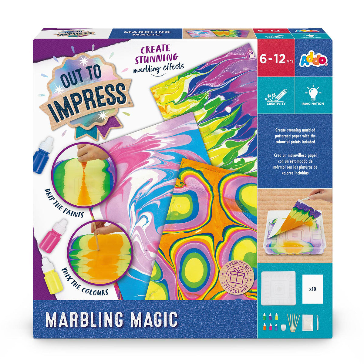 Unleash the wonder of swirling colors with the Out to Impress Marbling Magic set! This creative craft kit lets children aged 5 and up explore the fun of making stunning marbled patterns on paper using vibrant paints. The reusable tray, six colorful paints, and wooden mixing sticks provide everything young artists need to experiment, dip, and swirl to create unique, one-of-a-kind designs. Perfect for encouraging creativity, fine motor skills, and artistic expression, the finished marbled artwork can be transformed into wall décor, greeting cards, or handmade gifts.