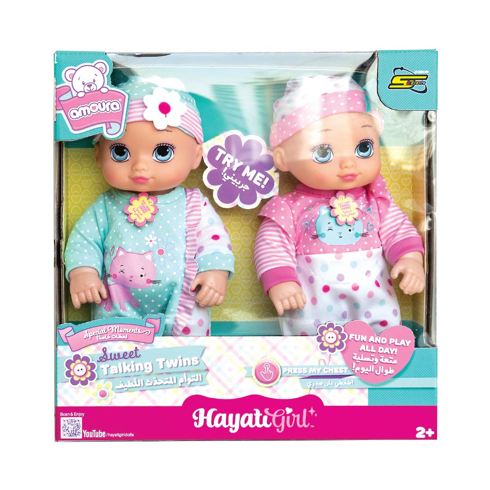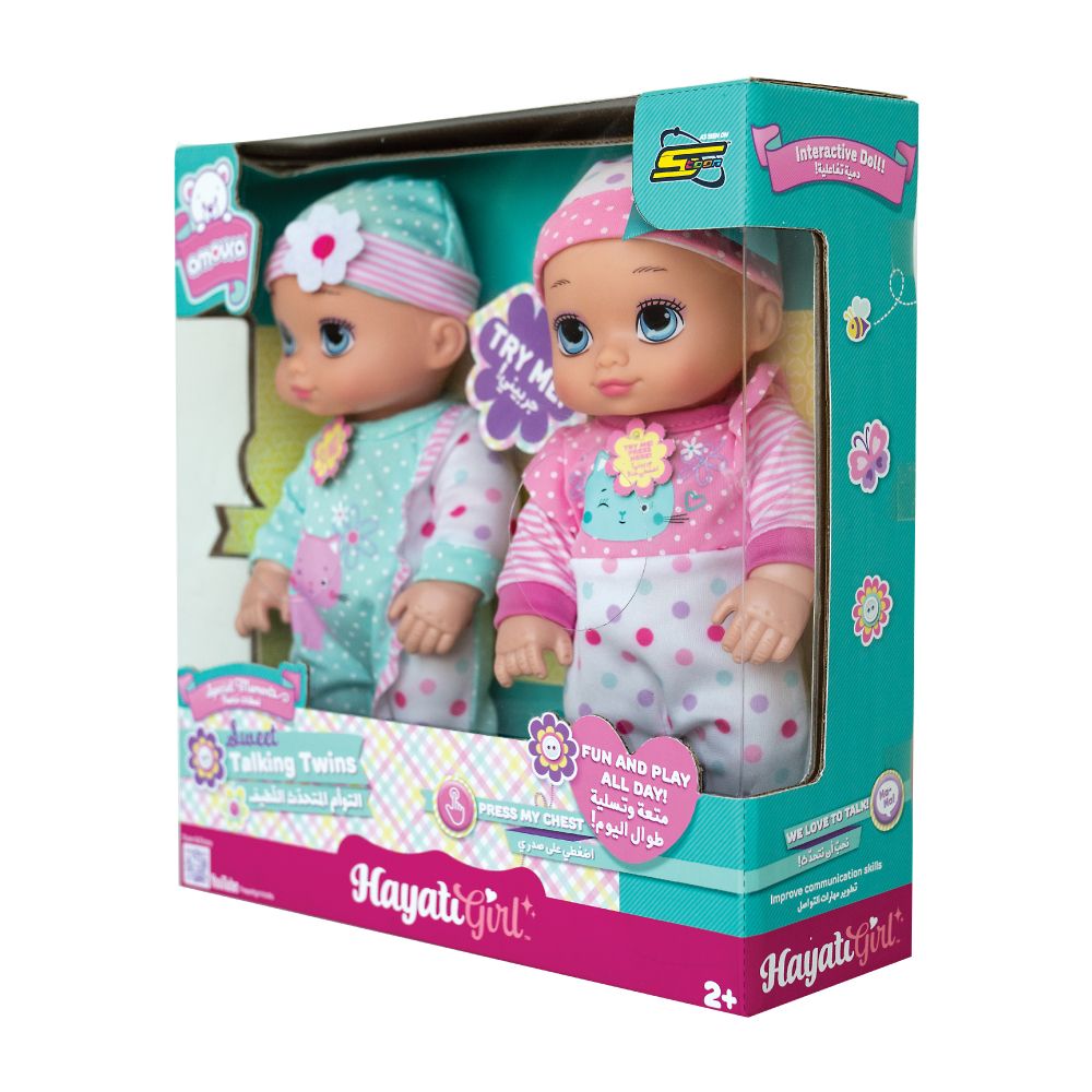 The Baby Amoura Sweet Twins 10 Inch Battery Operated dolls are adorable interactive twin dolls designed to delight young children. Each 10-inch doll responds with sounds and movements powered by batteries, allowing for engaging role-play and nurturing experiences. Made from soft, child-safe materials, these dolls are perfect for hugging, carrying, and interactive play. Ideal for children aged 3 years and above, the Sweet Twins dolls encourage imaginative play, empathy, and social skills, making them a wonderful gift for little ones.