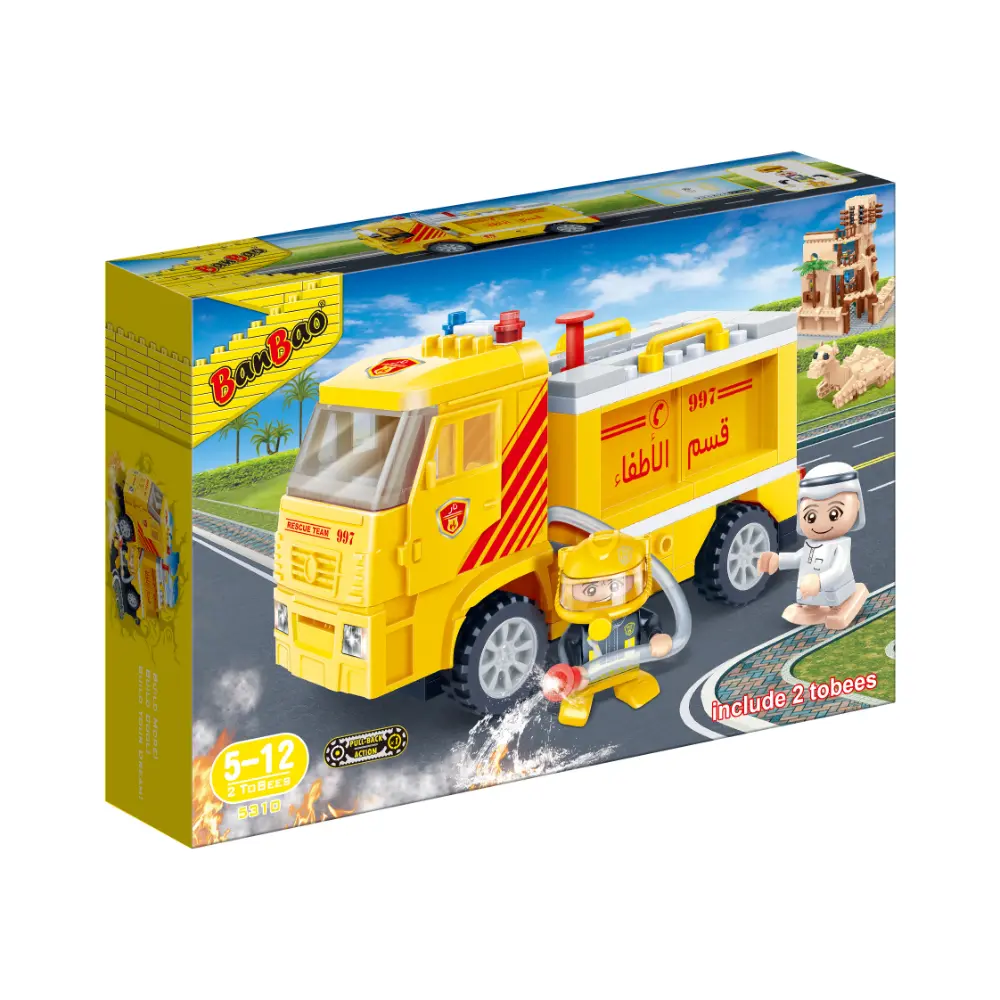 This Middle Eastern fire truck from BanBao from a new line of products is made specifically for kids. Little ones will experience endless joy of building and fun play with the Banbao Arabic line. The Banbao blocks are also compatible with other brands. This set will provide hours of fun play for little fireman!