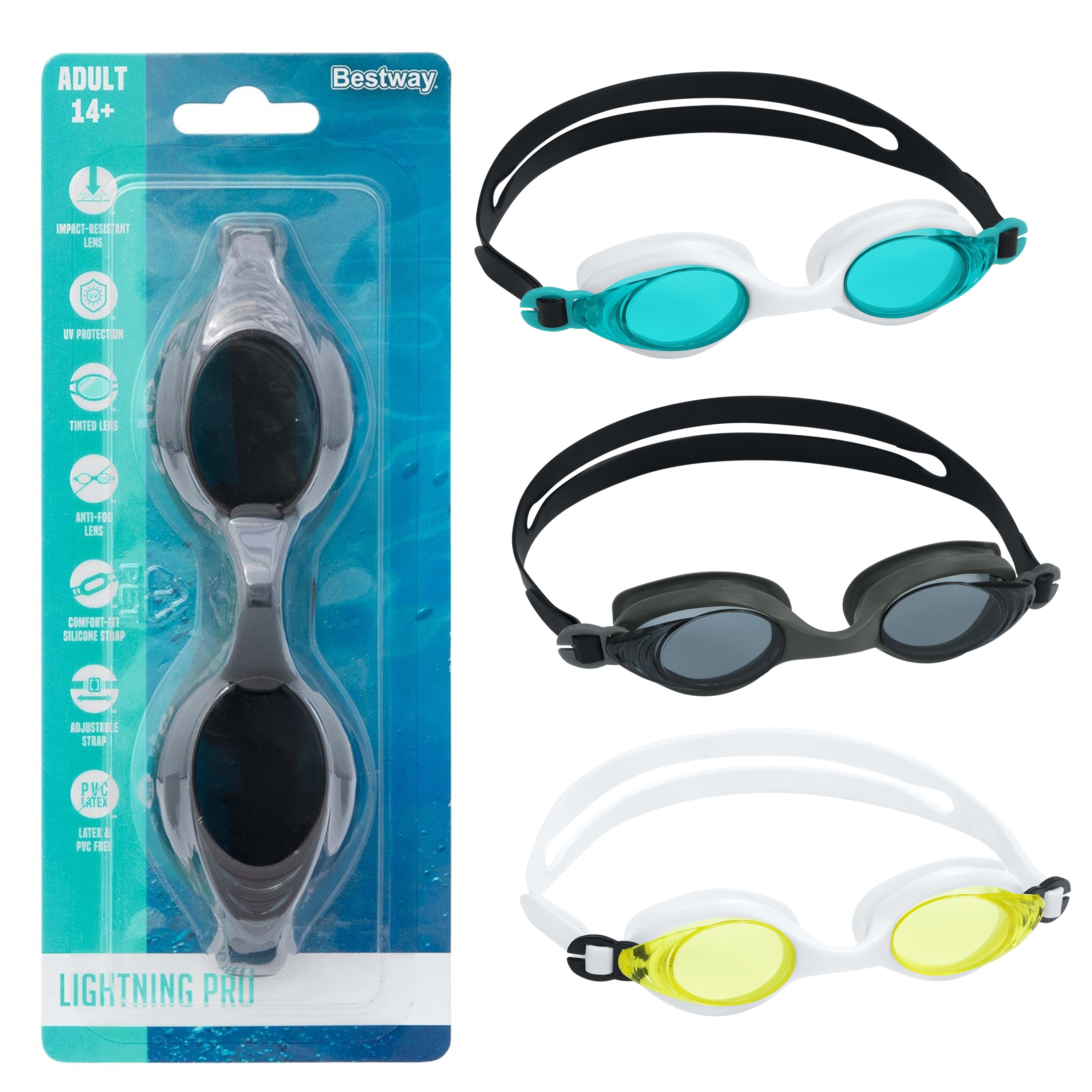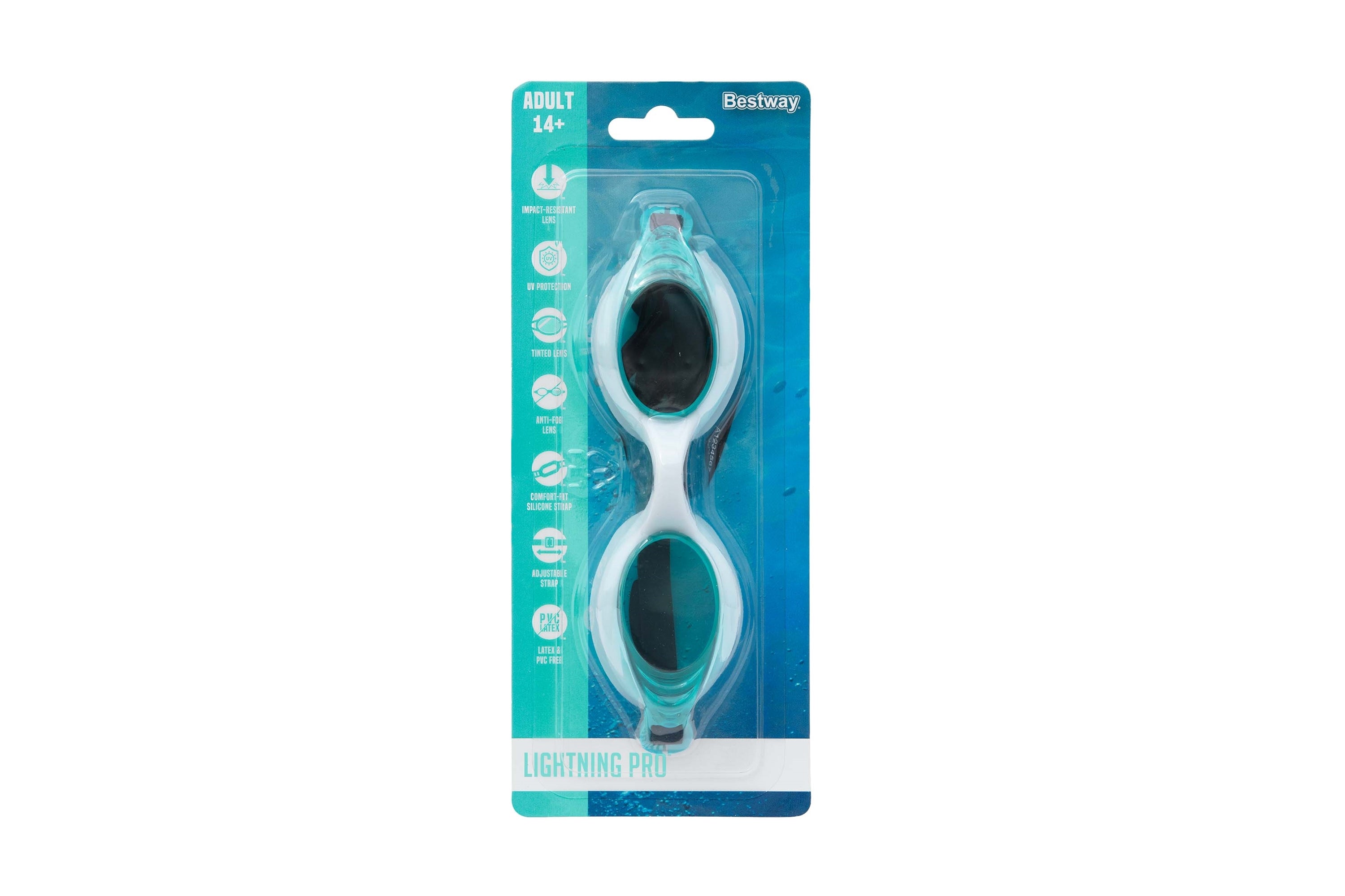 Swim with precision and comfort using the Bestway Lightning Pro Goggles. Designed for both casual and competitive swimmers, these goggles feature adjustable straps and leak-resistant lenses for a secure fit and clear underwater vision. Lightweight and durable, they ensure a comfortable and reliable swimming experience.