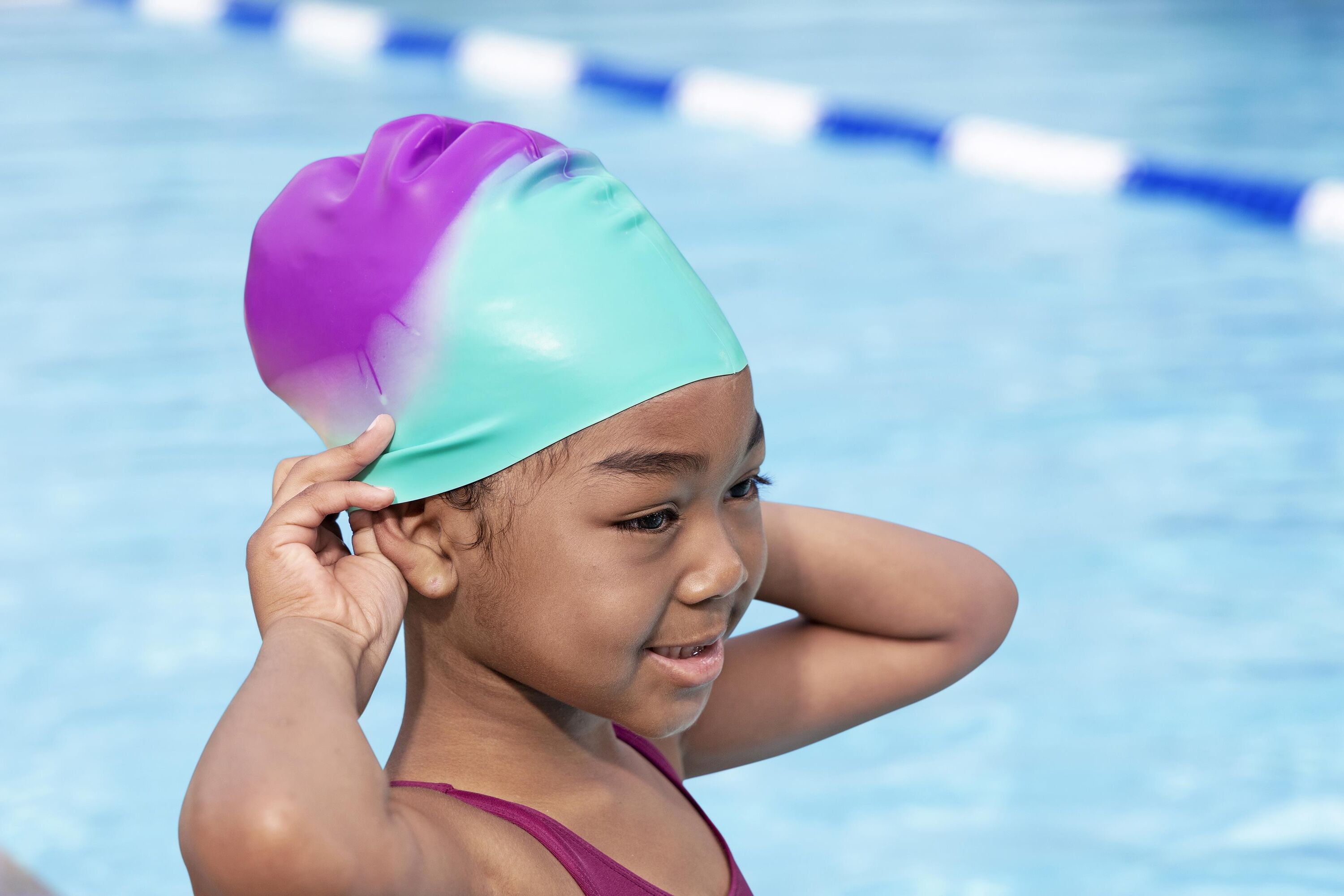 A vibrant and comfortable Bestway HydroSwim Lil Color Wave Swim Cap designed for kids to enjoy swimming in style. Made from durable, stretchable material, this swim cap ensures a snug fit, keeps hair protected from water, and reduces drag for a better swimming experience. Its colorful wave design makes it fun and easy to spot in the pool.