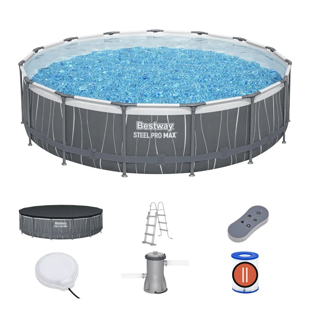 Light up your summer with your very own pool in your backyard! The Bestway® Steel Pro MAX™ Above Ground Pool Set promises flashing fun with an industry-first, color-changing and semi-transparent liner. Includes LED light will shine bright all summer long. With 7 colors, 8 modes, 3 speeds and 5 brightness levels, the light-up feature can be completely customized to fit your familys unique personalities! The durable pool frame is constructed with superior corrosion-resistant steel to ensure stability and longevity. Spend your summer in the water in this Bestway Steel Pro MAX pool!