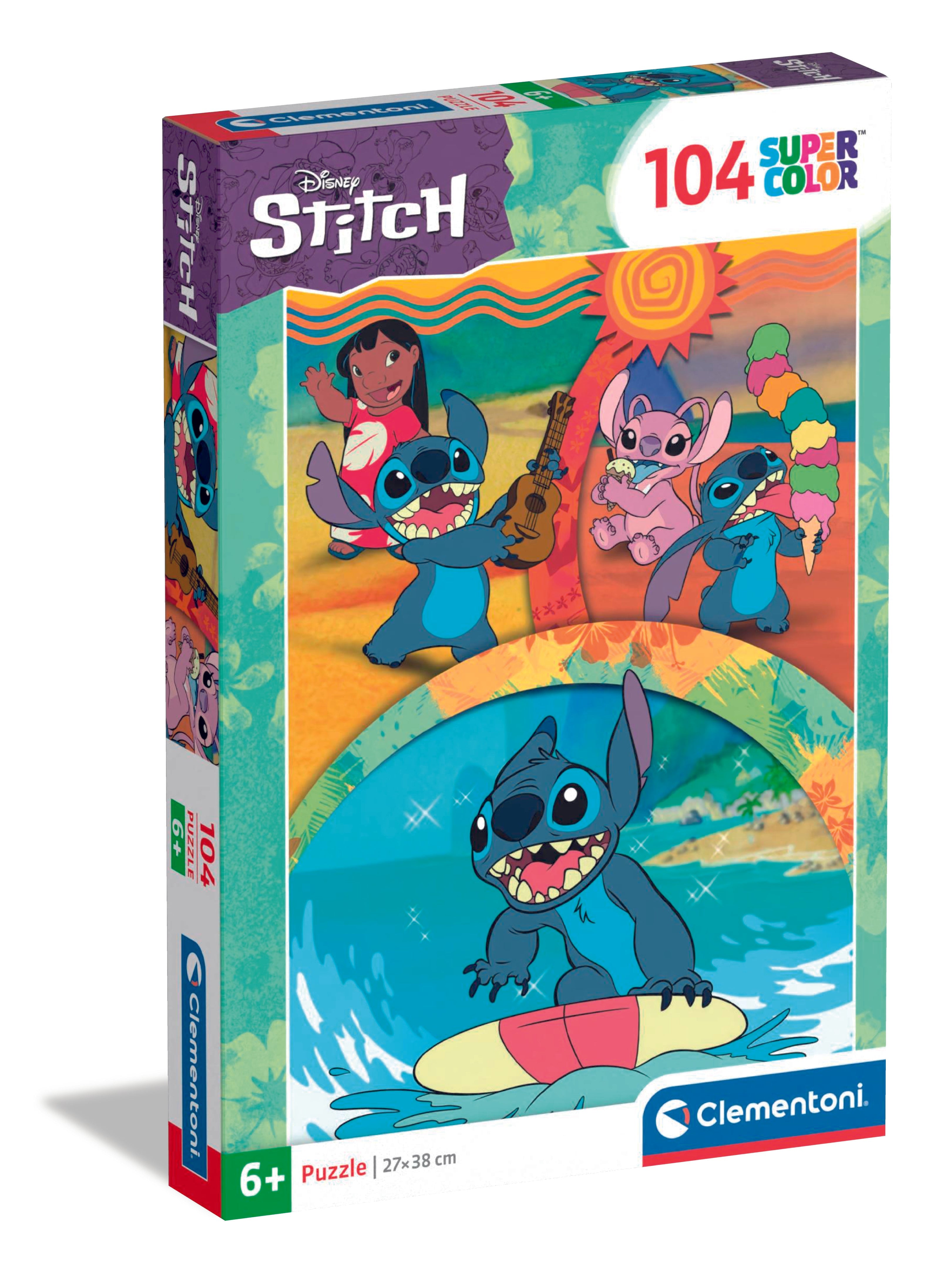 Bring home the tropical fun with the Clementoni Disney Stitch 104-Piece SuperColor Puzzle! Once completed, the puzzle measures 37.9 x 26.9 cm and features vibrant artwork of Stitch, Lilo, and friends enjoying a lively beachside adventure. Specially designed for kids, it helps develop observation, logical thinking, and fine motor skills while sparking creativity and concentration. With sturdy pieces, precise cut-outs, and bright SuperColor printing, this puzzle guarantees hours of fun for young Disney fans. Made with recycled materials and free from pollutants, Clementoni puzzles combine quality, learning, and sustainability. Proudly conceived, designed, and developed in Italy, with access to Clementoni’s lost pieces service for added peace of mind.