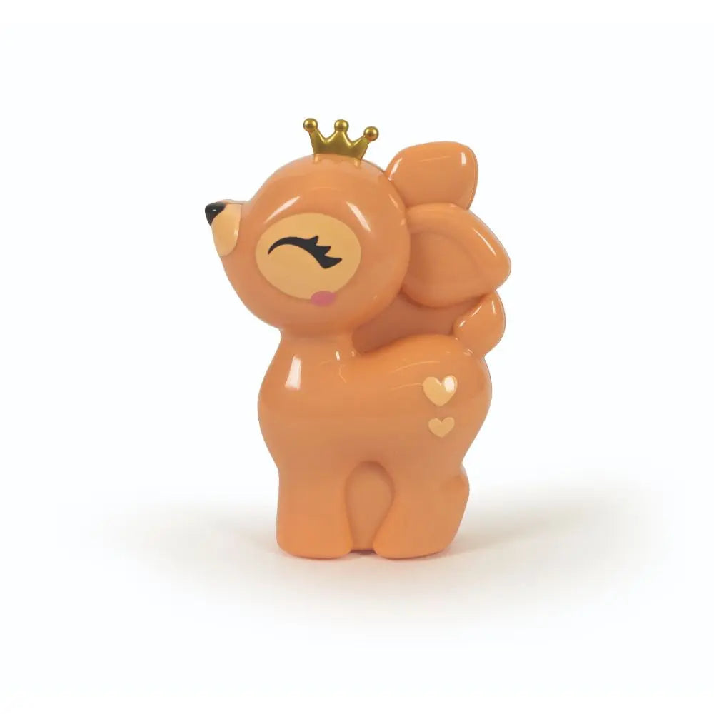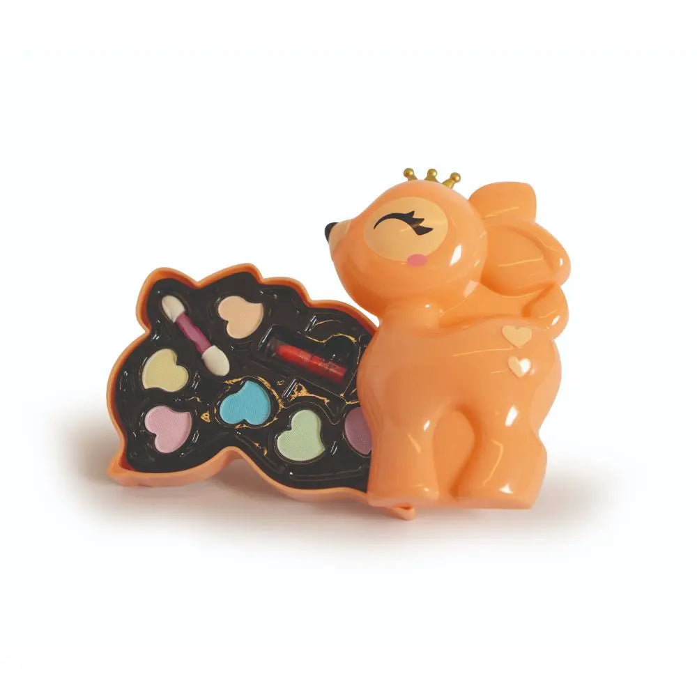 A make-up case in the shape of a fawn, with a compact size allowing it to be carried everywhere and with a palette of soft shades for a natural look that is always on trend. Little girls have always loved animals and their young. This has prompted the Crazy Chic line to offer wonderful, functional travel make-up cases inspired by favourite animals. The make-up case is perfect to carry in your backpack or bag, ready to transform any moment into a chance for creative play and fun that can be shared with friends, anywhere. The make-up in the case has been tested to ensure complete safety. Little girls can have fun with the make-up, following online tutorials or the instructions of friends and mums. The fawn wears a golden crown like the other baby animals, which are ideal to collect. The delicate shape and appealing eyes make this a truly original and precious make-up case, hugely desirable for little girls. The compact size make this the ideal make-up case to take everywhere. A bright colour palette includes 6 eyeshadows, 1 lipstick and an applicator, to always be on trend. The components and substances in the play set are subject to strict controls and testing to certify quality, giving little girls the freedom to explore, play and try out the make-up without risks. A play set that stimulates little girls’ creativity and manual skills in the field of beauty and cosmetics.backpack or bag, ready to transform any moment into a chance for creative play and fun that can be share.