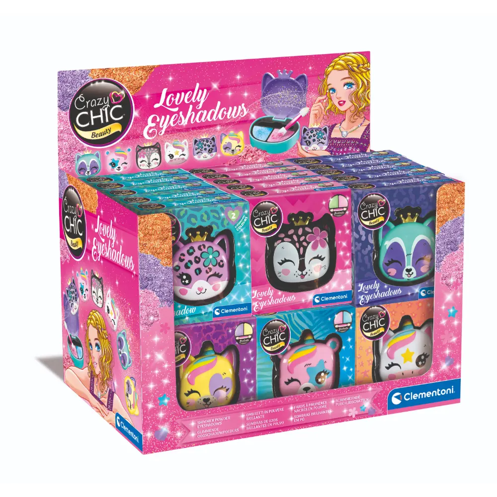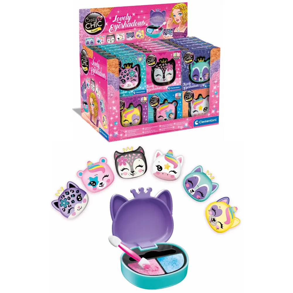 A mini make-up case shaped like a tender cub and containing 2 eyeshadows, with a compact size for carrying around. The case contains 2 eyeshadows and one applicator. The sweet cub wears a golden crown like the other baby animals in the line, which are ideal to collect. The case is designed to conquer little Girls The make-ups in the case have been tested for totally safe play and can be easily removed with water. Perfect for children aged 6 years and up.