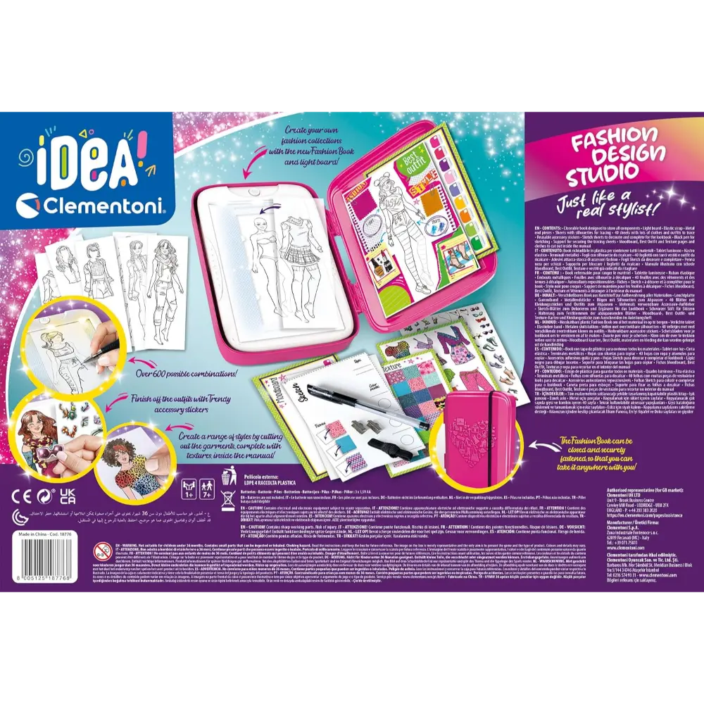 Unleash your inner fashion designer with the Clementoni IDEA Fashion Book, a creative design studio that lets kids craft their own exclusive clothing collections with ease. This all-in-one kit includes a stylish light board that makes tracing and customizing fashion templates simple and fun. Budding designers can use the included ink pen, fashion stencils, and moveable accessory stickers to sketch, mix, and match stylish looks. The fashion book storage box keeps everything neatly organized and portable, so young creatives can bring their mobile fashion studio anywhere. Whether at home or on the go, this activity set inspires creativity, artistic skills, and a passion for fashion design in children aged 6 years and up.