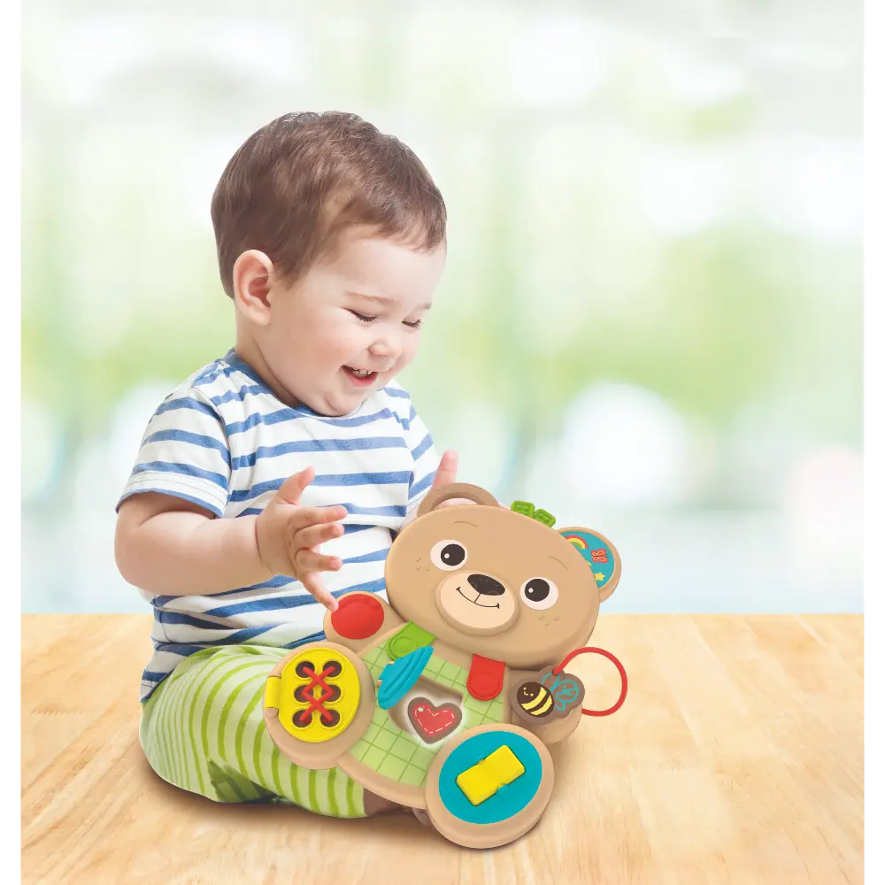 The Baby Bear Busy Panel is a fun and engaging toy designed to develop your child’s manual skills, concentration, and sensory abilities. Inspired by the Montessori method, it features a variety of materials, mechanisms, and activities that guide children in learning to handle everyday objects while stimulating their senses. Reimagined with Baby Clementoni’s empathetic and playful design, this Italian-made toy provides endless opportunities for exploration, learning, and imaginative play, making it perfect for small children.