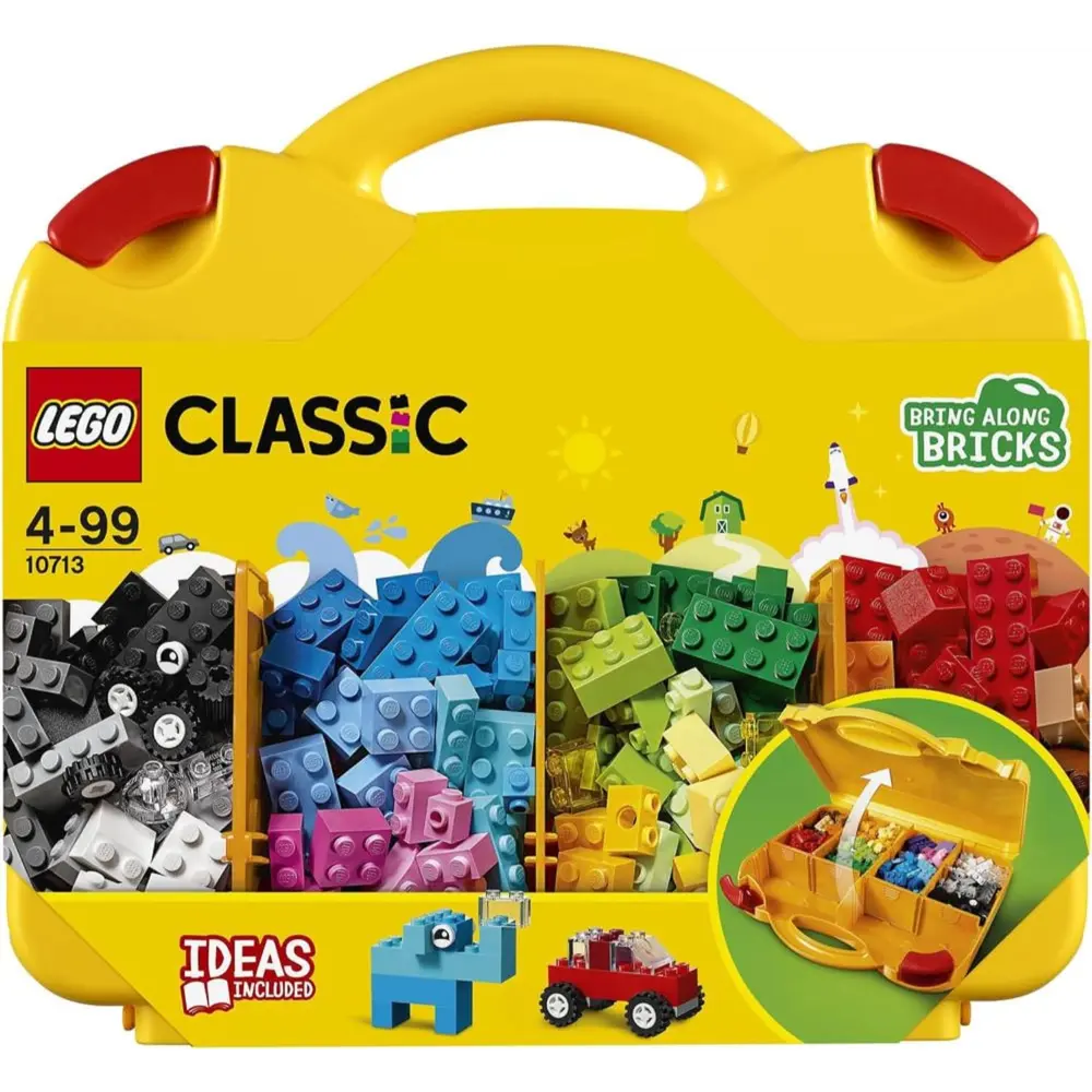 Create, play and pack neatly away with this smart and convenient LEGO® Classic 10713 Creative Suitcase, featuring a selection of brightly colored LEGO building bricks, including bricks, eyes, wheels and shapes, for building all kinds of houses, vehicles, creatures and creations. Open the yellow case to access multiple compartments where you can organize and store LEGO pieces. This set also includes simple, age-appropriate building instructions that will help children discover their own creative building skills.