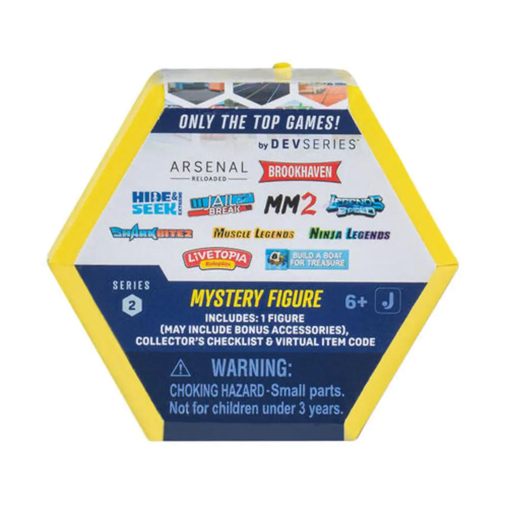 Create the ultimate play experience with DevSeries Mystery Figures. Blinds include one of 24 assorted 2.75-inch action figures and feature popular characters from the following games: Arsenal Reloaded, Build a Boat for Treasure, Brookhaven, Hide and Seek Extreme, Jailbreak, Legends of Speed, Livetopia, Murder Mystery 2, Muscle Legends, Ninja Legends, and SharkBite 2. Each figure has Mix and Match capability so you can put your own spin on each character. Blinds also include an Exclusive Virtual Item Code that unlocks a unique accessory for your avatar. Collect all 24 DevSeries Mystery Figures and showcase your love for game devs. Officially licensed product from Jazwares. Ages 8+