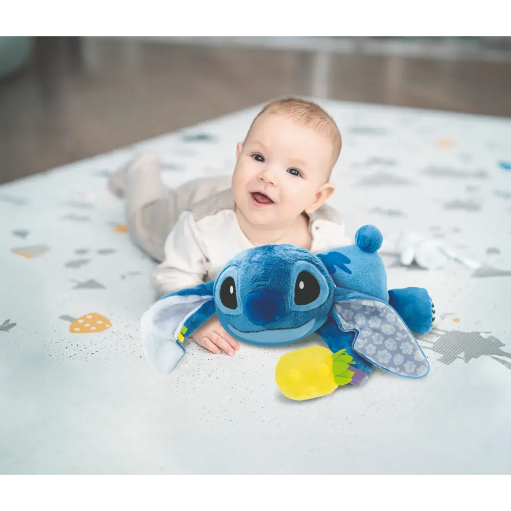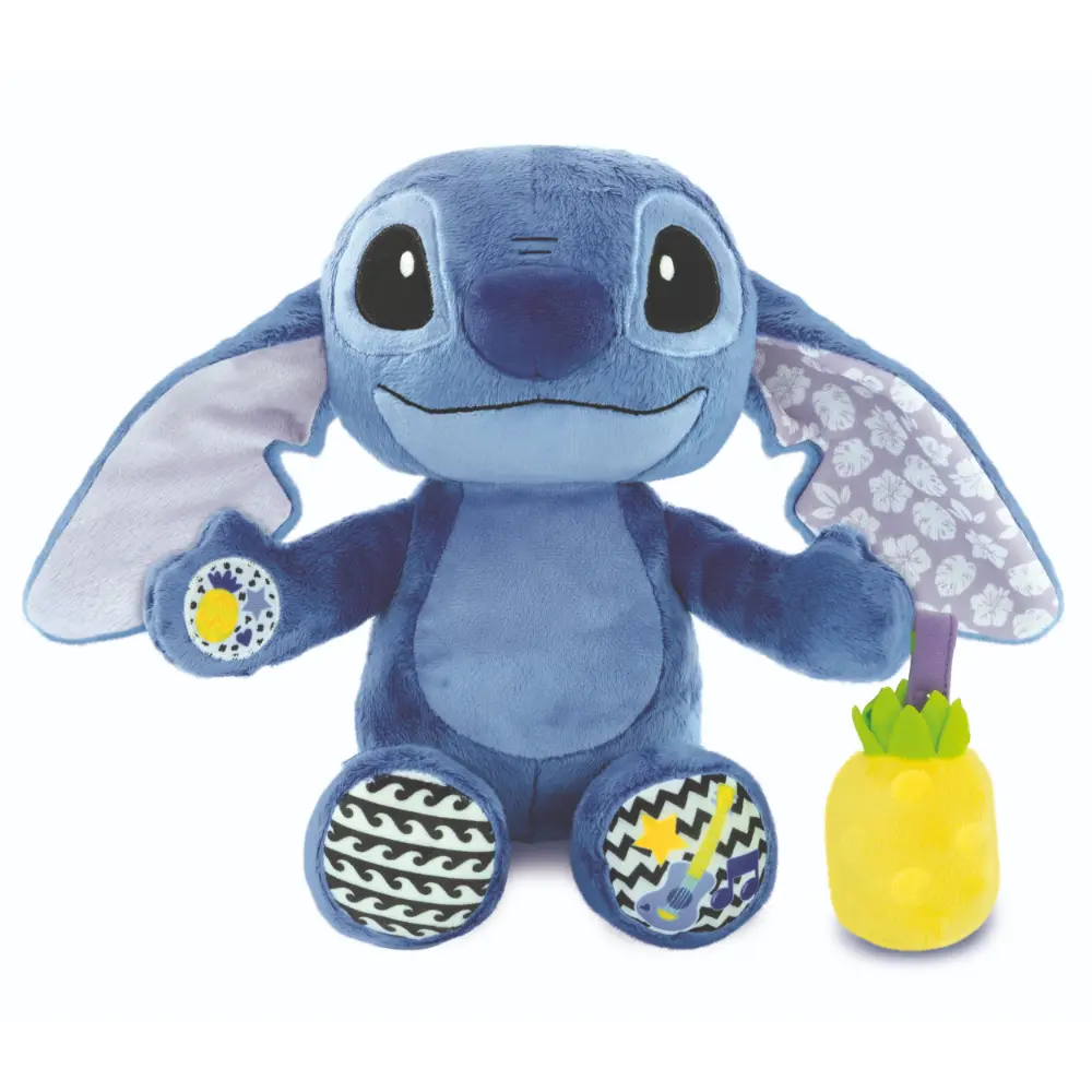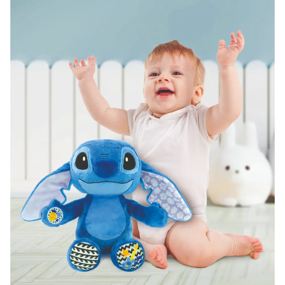 Stitch the new ultra-soft and tender huggable plush toy is perfect for keeping children company while they sleep. By pressing the interactive buttons, the child can listen to Stitch sounds and various music sound effects. Stitch will sing rhythm time and tummy time together with your child. An ideal toy for stimulating the child. Recommended age: + 0 months