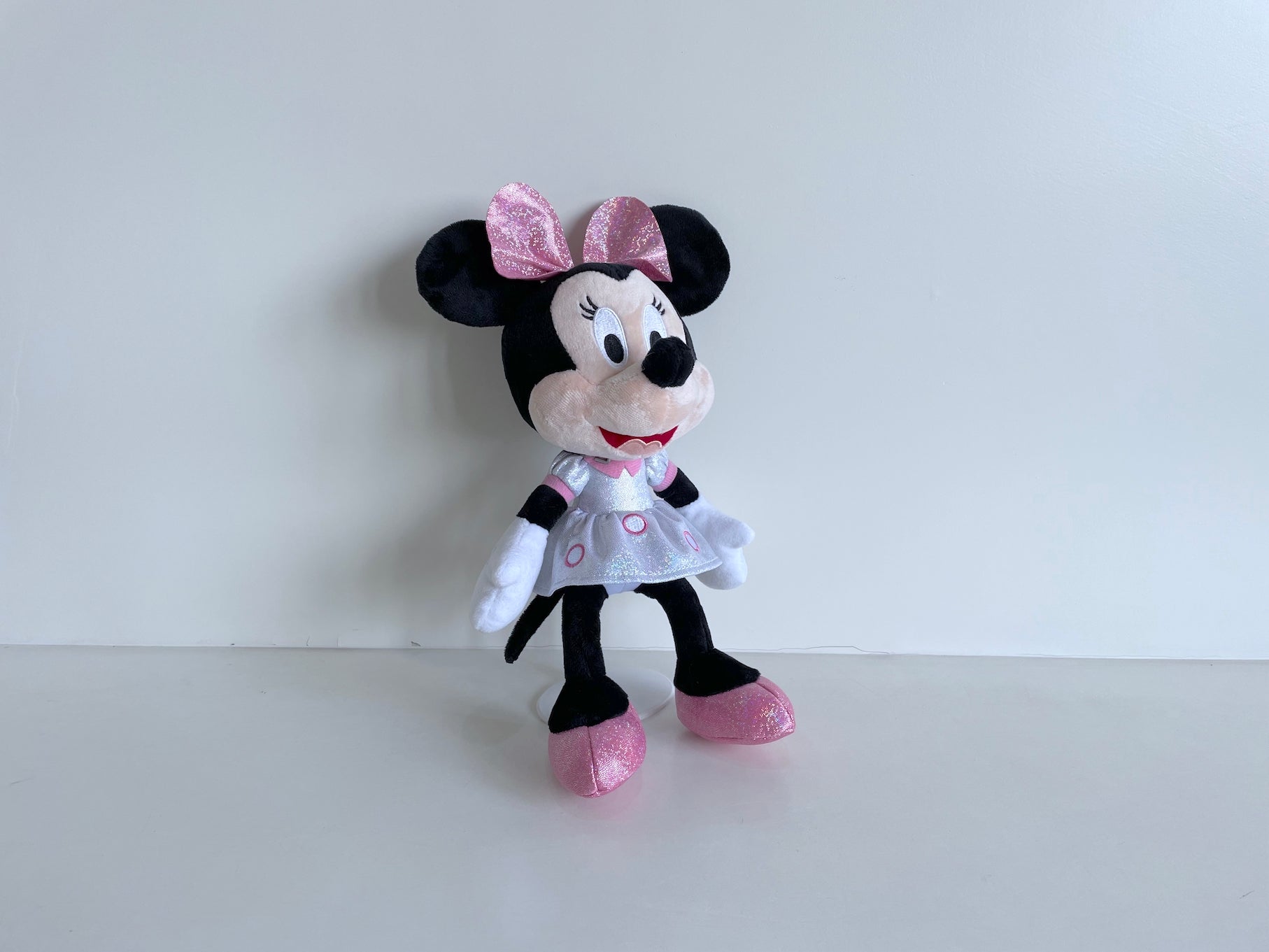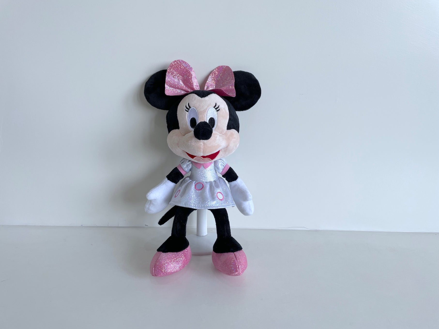 Add a touch of sparkle to cuddle time with the Disney Plush Sparkly Minnie D100! This 12-inch medium plush features Minnie Mouse in a glittery outfit, soft and huggable for children and Disney fans alike. Perfect for playtime, display, or snuggling, Minnie brings magic, charm, and fun to every cuddle.