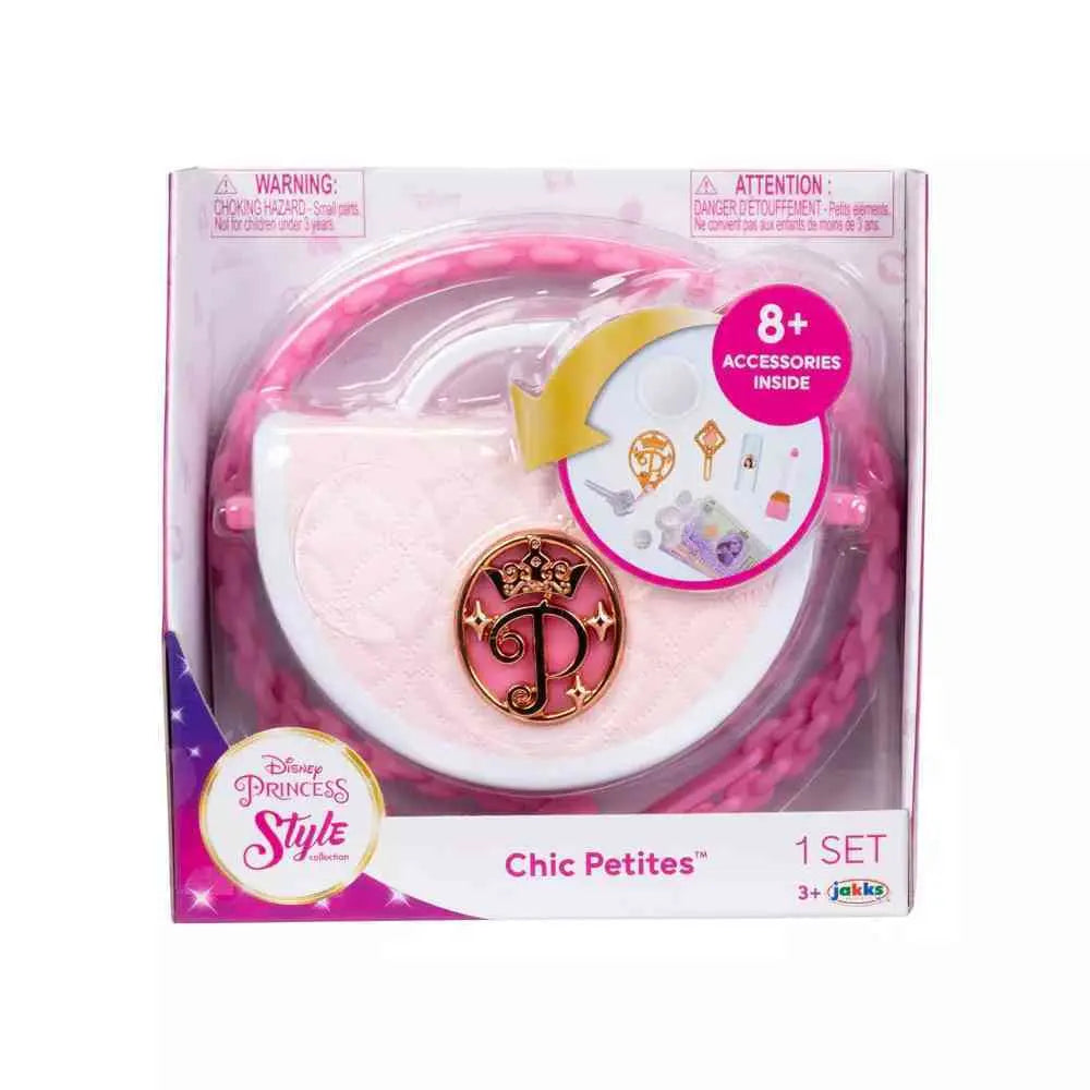Step into the enchanting world of the Disney Princess Style Collection where play meets modern Disney Princess magic for our stylish princesses! The Chic Petites collection features adorably trendy mini bags with unique designs inspired by real-life luxury handbags, providing four delightful looks for any magical moment. Each Chic Petite is bursting with over 8 playful accessories, like pretend credit cards and play makeup! With a super stylish strap designed for easy adventures, these mini hand