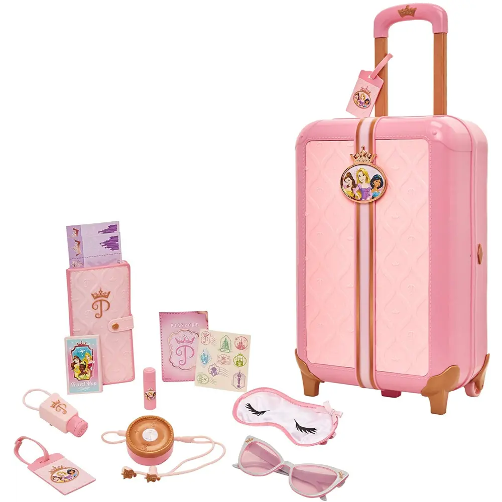 Jet off in royal style with the Disney Princess Style Collection Play Suitcase! This elegant travel set includes everything a young princess needs for glamorous adventures—whether at home or on the go. With 17 fun travel accessories, including a play passport, plane tickets, earbuds, and more, kids can imagine jet-setting to magical destinations. The suitcase features real working wheels and a retractable handle for realistic play. Stylish, durable, and easy to carry, it’s the perfect set for imaginative travel play anytime, anywhere.