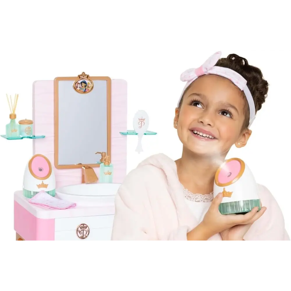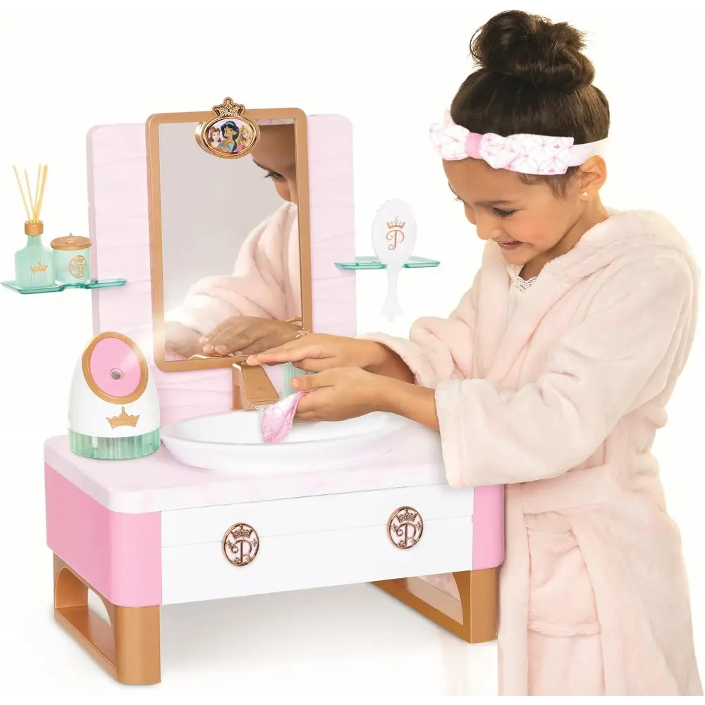 Allows girls to recreate how they see their moms, get ready at home at the bathroom sink in an aspirational, realistic way with fun feature play and contemporary beauty & skin care accessories. Execute in fashion to maximize and incorporate additional realistic 4D tactile play, e.g real steam humidifier in facial steamer, enhance play with water feature and other on trend real world feature accessories.