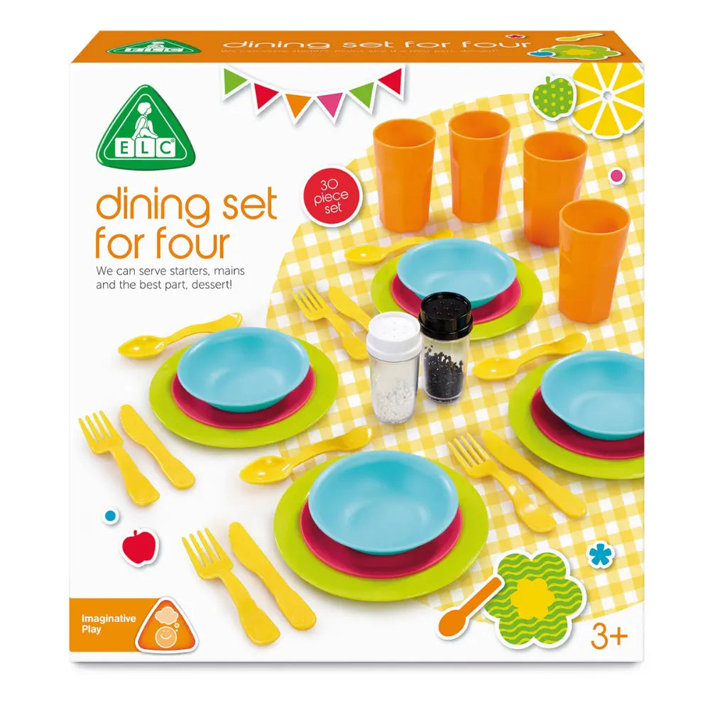 It's time to host a dinner party for friends, family or your teddies with the Dining Set for Four from Early Learning Centre! You can create a beautiful outdoor dinner party scene in your garden and invite whoever you'd like! With colorful plates, saucers and bowls we can serve our guests starters, mains and desserts! Would they like a drink, too? Use the included cutlery to eat your pretend-play dinner. Don't forget to add salt and pepper! This Dining Set inspires imaginative play, encouraging