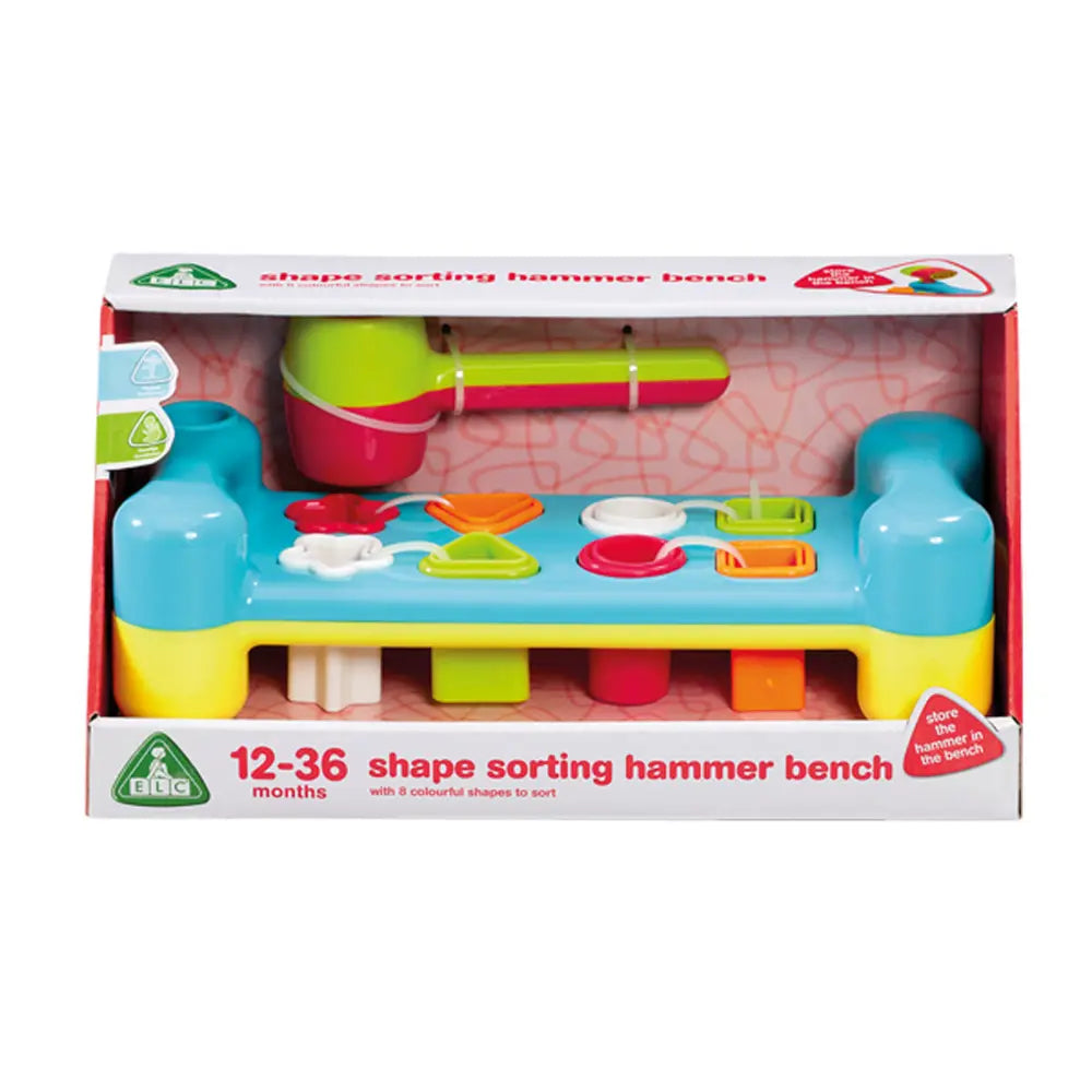 Little DIY enthusiasts will love playing with this Shape Sorting Hammer Bench from the Early Learning Centre. This brightly coloured bench is so much fun! Do your best to match the shapes into the slots, then hammer them down with the included hammer. Then, turn it over and enjoy doing it over again! As your baby grows, you can talk to them about colours and shapes and help them to discover which ones fit where. Great for colour and shape recognition.