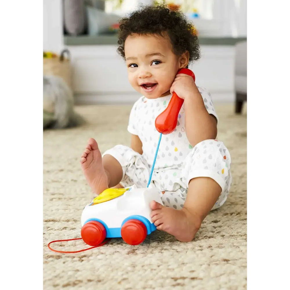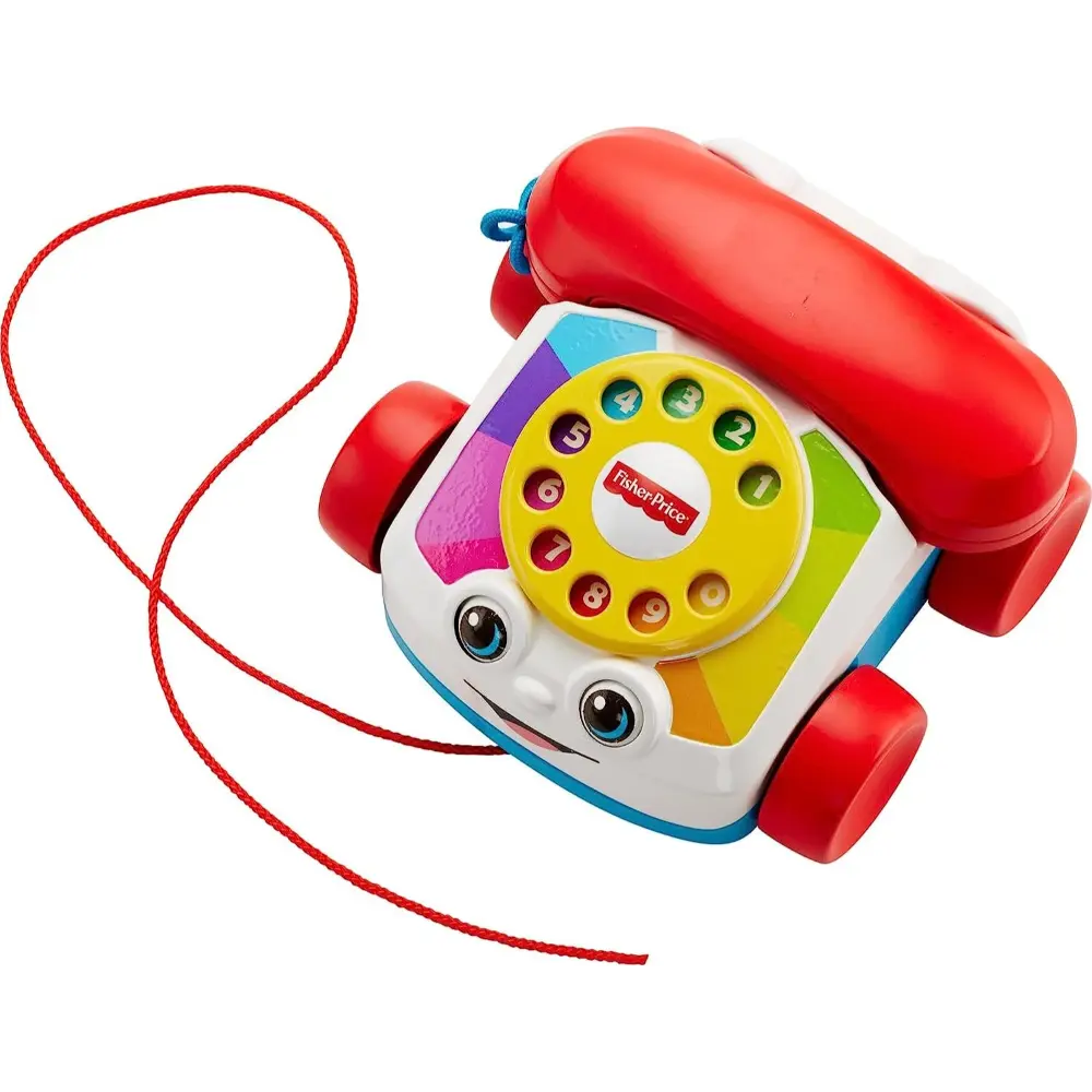 Encourage early learning and active play with the Fisher-Price Chatter Telephone! Featuring a friendly face, spinning dial, and eyes that move up and down, this classic pull-along toy engages babies and toddlers alike. With fun ringing sounds and a durable design, it helps little ones practice coordination, motor skills, and role-playing as they pretend to chat with Mum and Dad. Introducing numbers 0-9 in an entertaining way, this toy supports developmental milestones while providing hours of fun for children on the move.
