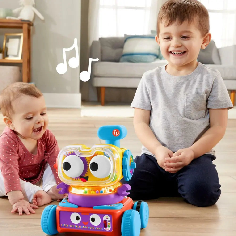 Your little one will love learning and growing with the Fisher-Price 4-in-1 Ultimate Learning Bot! This transforming toy set includes four interactive bots, each packed with hands-on activities like spinning eyes and crawl-and-chase play. Kids can enjoy playing with each bot individually or combine them to create one big, interactive robot buddy featuring music, sounds, and phrases. With Smart Stages technology, the educational content adapts as your child grows, teaching the alphabet, shapes, colors, numbers, and more. The motorized bot moves with lights and music to encourage crawling and active play, perfect for infants through preschoolers.