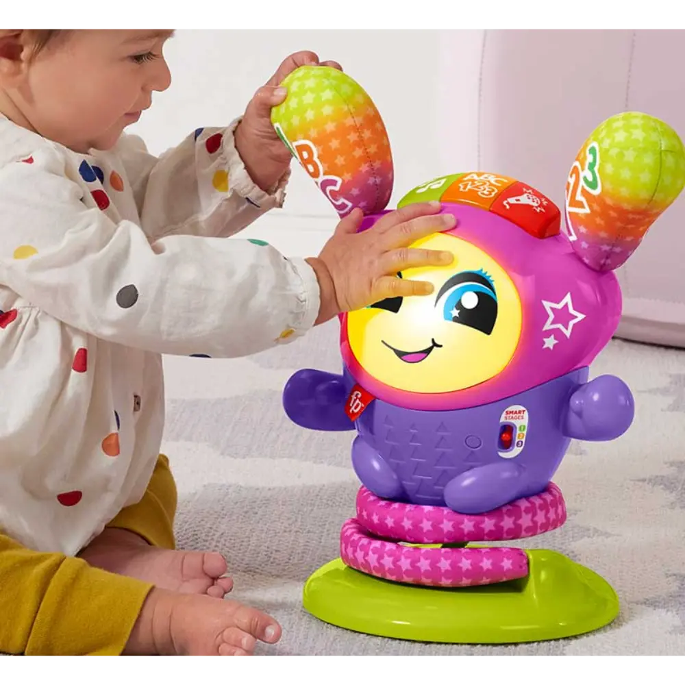 Get the learning party started with the Fisher-Price DJ Bouncin’ Star! This interactive musical toy springs to life with colorful lights, motorized bouncing action, and over 75 songs, sounds, and phrases that teach the alphabet, counting, colors, and opposites. Featuring 3 Smart Stages learning levels, it grows with your baby from 9 to 36 months, keeping little dancers moving and giggling. Plus, the built-in microphone lets kids record and play back their own messages with fun remix effects, making playtime a dynamic, educational experience.