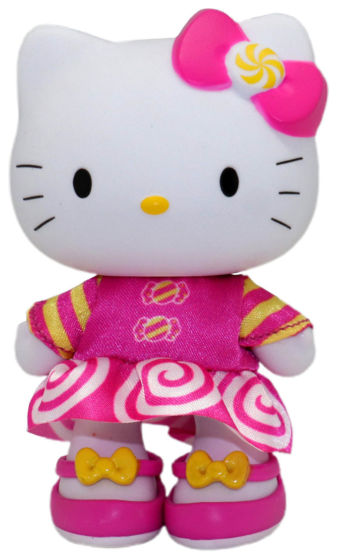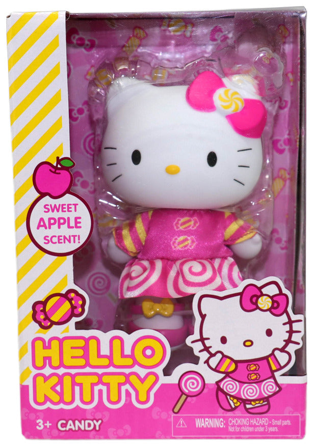 Add a sweet touch to your Hello Kitty collection with the Hello Kitty Candy Figure. This charming collectible showcases Hello Kitty in a delightful candy-themed outfit, featuring a pink dress adorned with swirly candy patterns and her signature pink bow accented with a candy swirl detail. Infused with a sweet apple scent, this figure offers a fun sensory experience alongside its adorable design. Perfect for both playtime and display, it’s a must-have for Hello Kitty fans aged 3 and up.