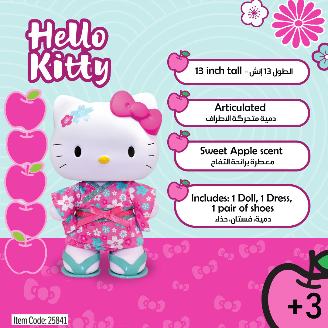 Celebrate cultural elegance with the Hello Kitty 13-Inch Floral Kimono Doll. Known as Kitty White, Hello Kitty embraces her Japanese heritage in a stunning pink kimono adorned with delicate floral patterns. With movable head, arms, and legs, this beautifully crafted doll combines traditional charm with classic Hello Kitty style. Perfect as a display piece for collectors or a cuddly companion for children, it’s a timeless addition to any Hello Kitty collection.