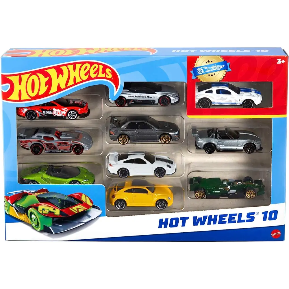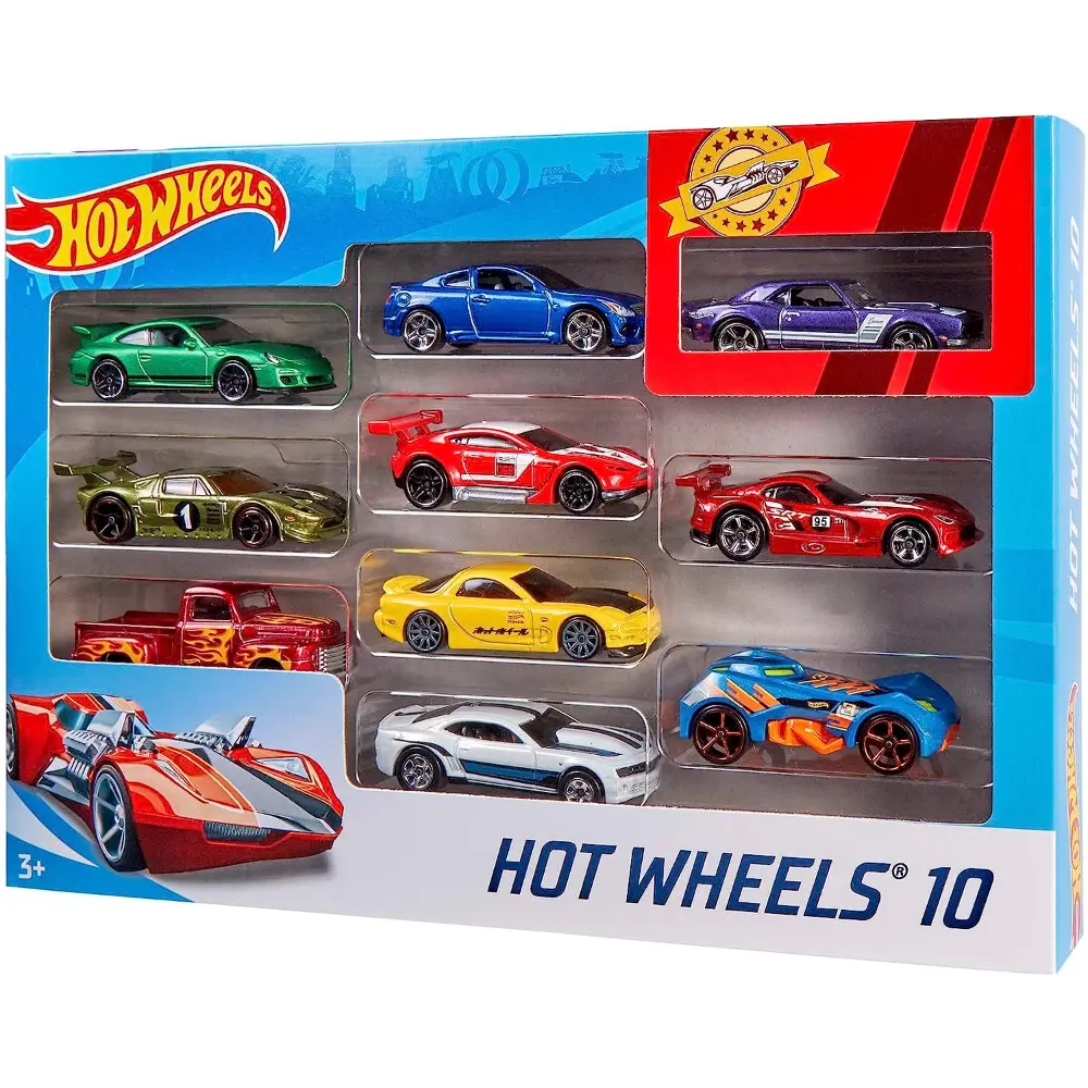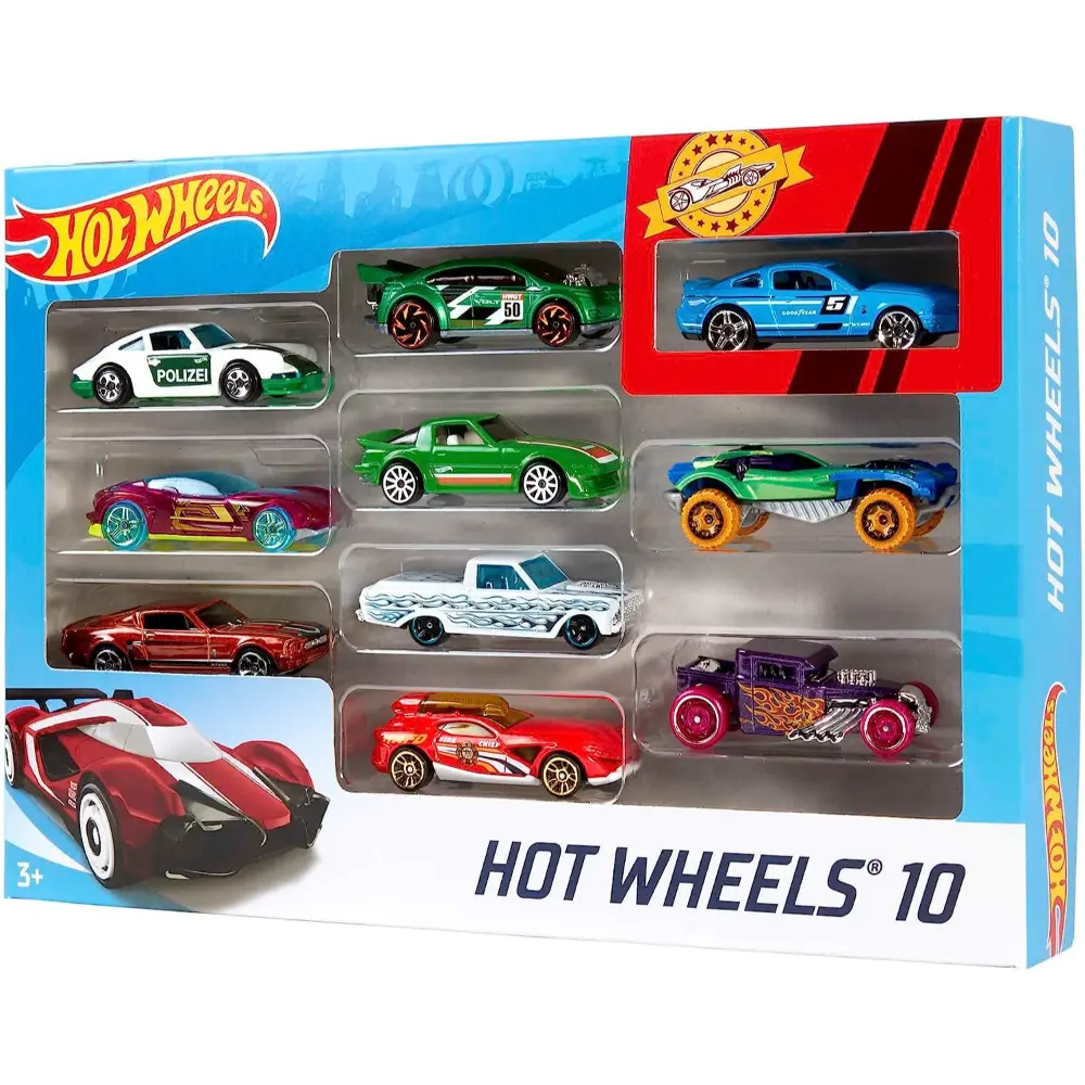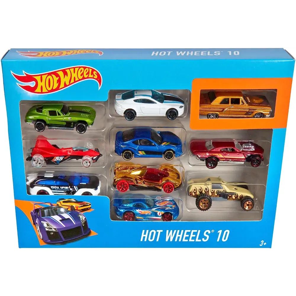Since 1968, Hot Wheels vehicles have been a favorite of collectors, car enthusiasts, and racing fans of all ages. This 10-Pack assortment offers a variety of 1:64 scale die-cast cars, each featuring realistic details and authentic decals. Perfect for collecting, racing, or imaginative play, this set makes a great gift for kids and collectors alike. Expand your Hot Wheels collection with this exciting assortment and enjoy endless fun and action.
