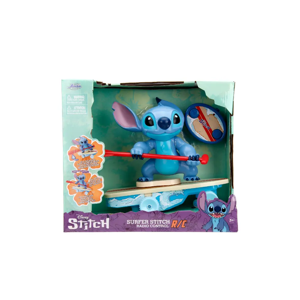 Experience lots of fun with the RC surfer stitch! This unique remote control vehicle with 1-channel 2.4 GHz technology offers innovative features such as forward-straight and backward curve movement as well as an impressive rotation and wheelie function. The included Stitch figure has a drop and raise function for even more fun. Measuring 25 cm and a multi-coloured design, this model is perfect for fans of Stitch and RC vehicles. Ideal for children and adults alike!