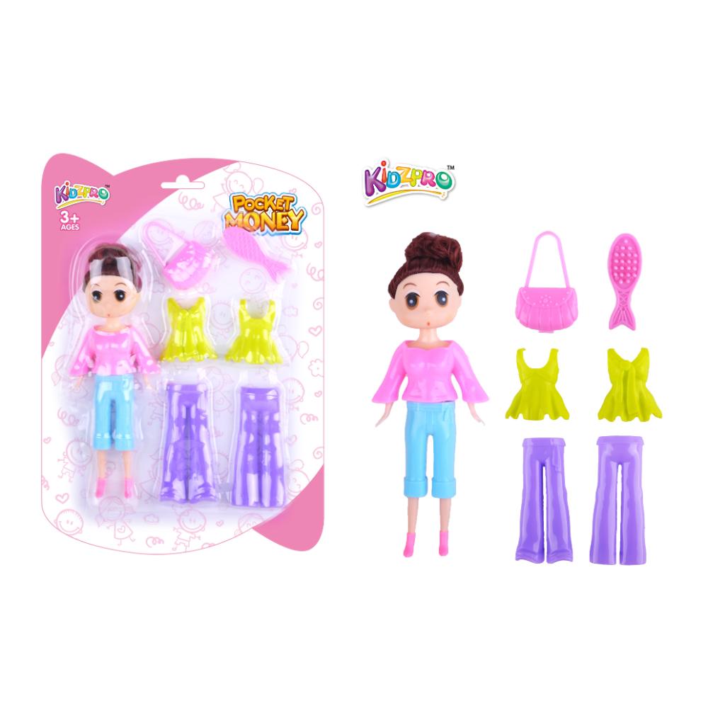 Unleash creative style play with the Kidzpro Fashion Doll Snap On 7‑pieces set! This fun playset includes a stylish fashion doll and six snap‑on accessories — from mix‑and‑match outfits to eye‑catching pieces — so kids can create endless looks and express their creativity. Easy to snap on and off, the accessories make dressing up simple and engaging for little hands. Perfect for imaginative play, this set helps build fine motor skills and encourages storytelling as kids style their doll for every occasion. A great addition to any playroom and a perfect gift for young fashion lovers!