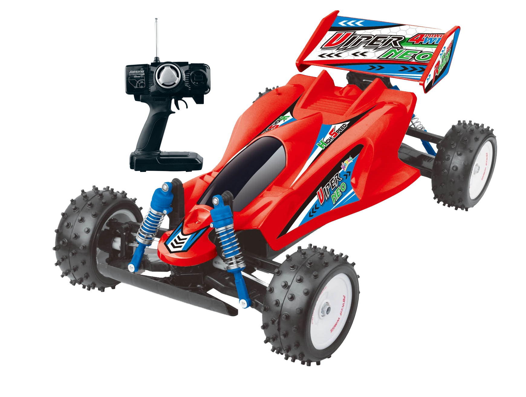 This remote control buggy is built for exciting outdoor adventures with powerful 4-wheel drive and smooth steering control using a gun-type controller. Designed for high speed and stability, it features a super suspension system that handles rough surfaces with ease. Made from high-quality, non-toxic ABS material, the buggy is safe, durable, and has a smooth, burr-free finish. It comes ready to run with a rechargeable battery pack included, so kids can start playing right away.