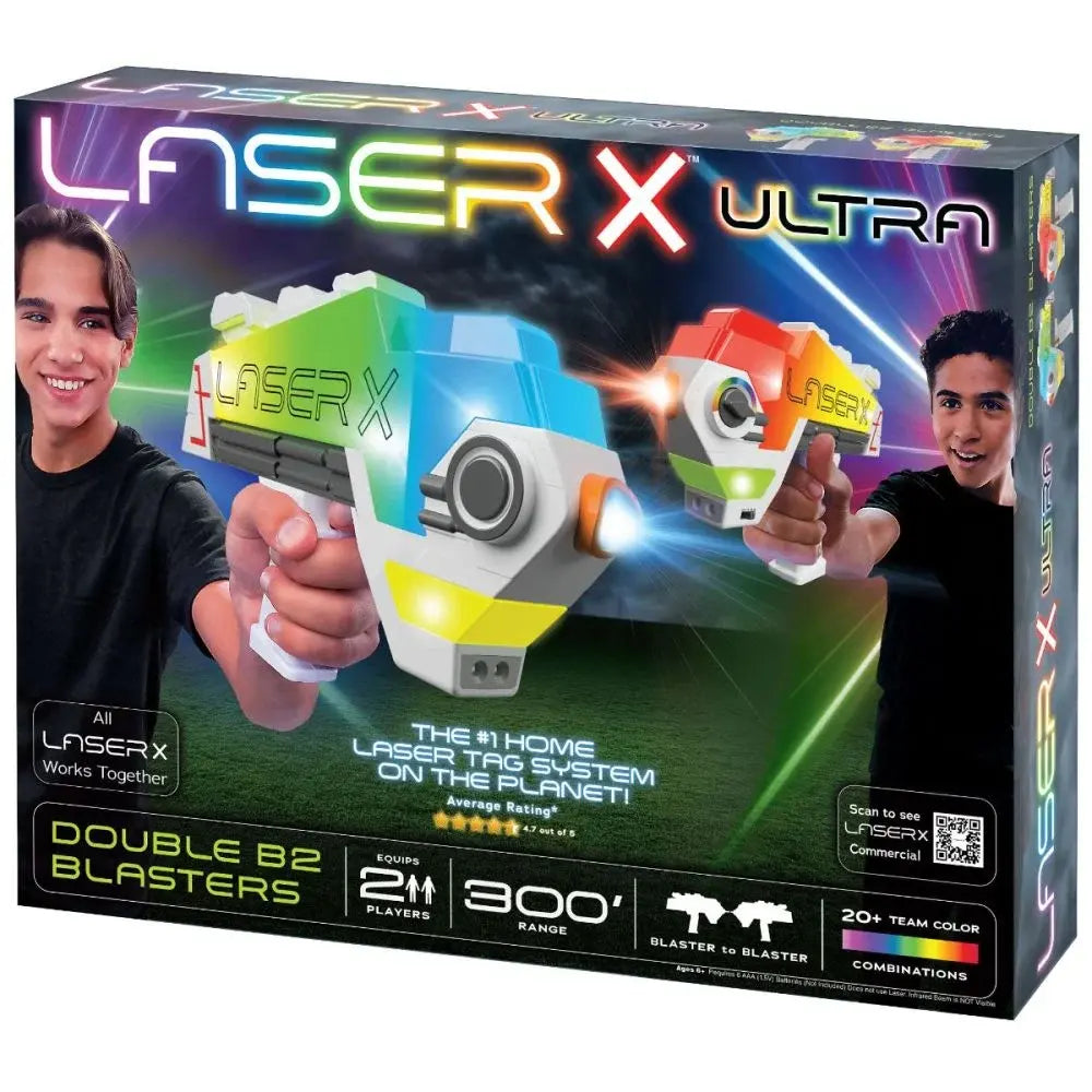 The Laser X Ultra Double B2 Blasters are the ultimate in laser tag fun for all ages! These blasters are designed to be compact and easy to handle, making them perfect for indoor or outdoor play. With a range of up to 300', you can take on your opponents from a safe distance and still come out on top. Get ready for hours of intense, heart-pumping laser tag fun with this Laser X Ultra.