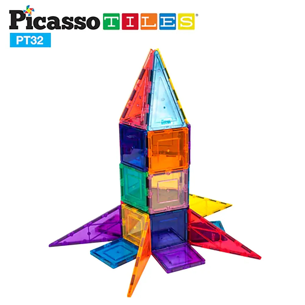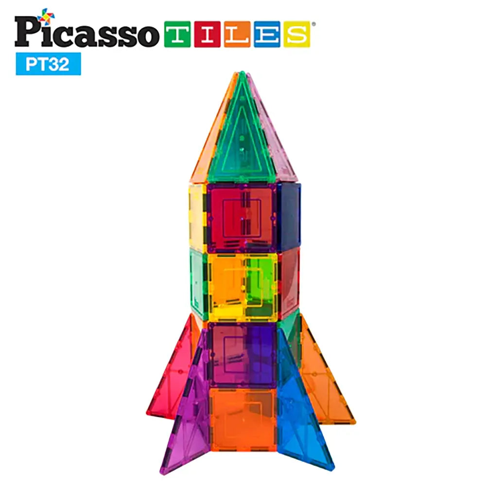No limitations, scalable to build as big as desired by adding more pieces to create the masterpiece. The rocket set magnetic building block tiles feature 2 pentagon, 5 right triangle, 5 isosceles triangle and 20 square tiles to build the rocket shape structure or to be used in conjunction with other PicassoTiles magnet construction blocks as integrated add-on pieces to offer open ended possibilities of unique design structures to nurture creativity and intelligence.